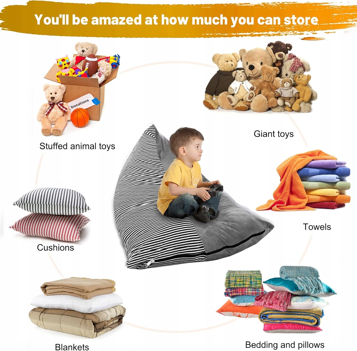 ✅ Пуфи для зберігання досить місткі, щоб вмістити до 200 літрів наповнювача - це приблизно 100 м’яких тварин! Якщо у вашої дитини менше іграшок, ви можете використовувати пуф для зберігання подушок, ковдр чи інших предметів, що займають багато місця.