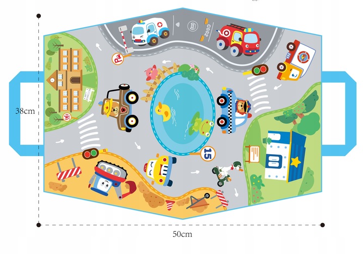 У набір входить барвистий килимок із візерунком вулиці та міста, який полегшить гру більш привабливим. Килимок можна використовувати яксумку для перенесення іграшок.