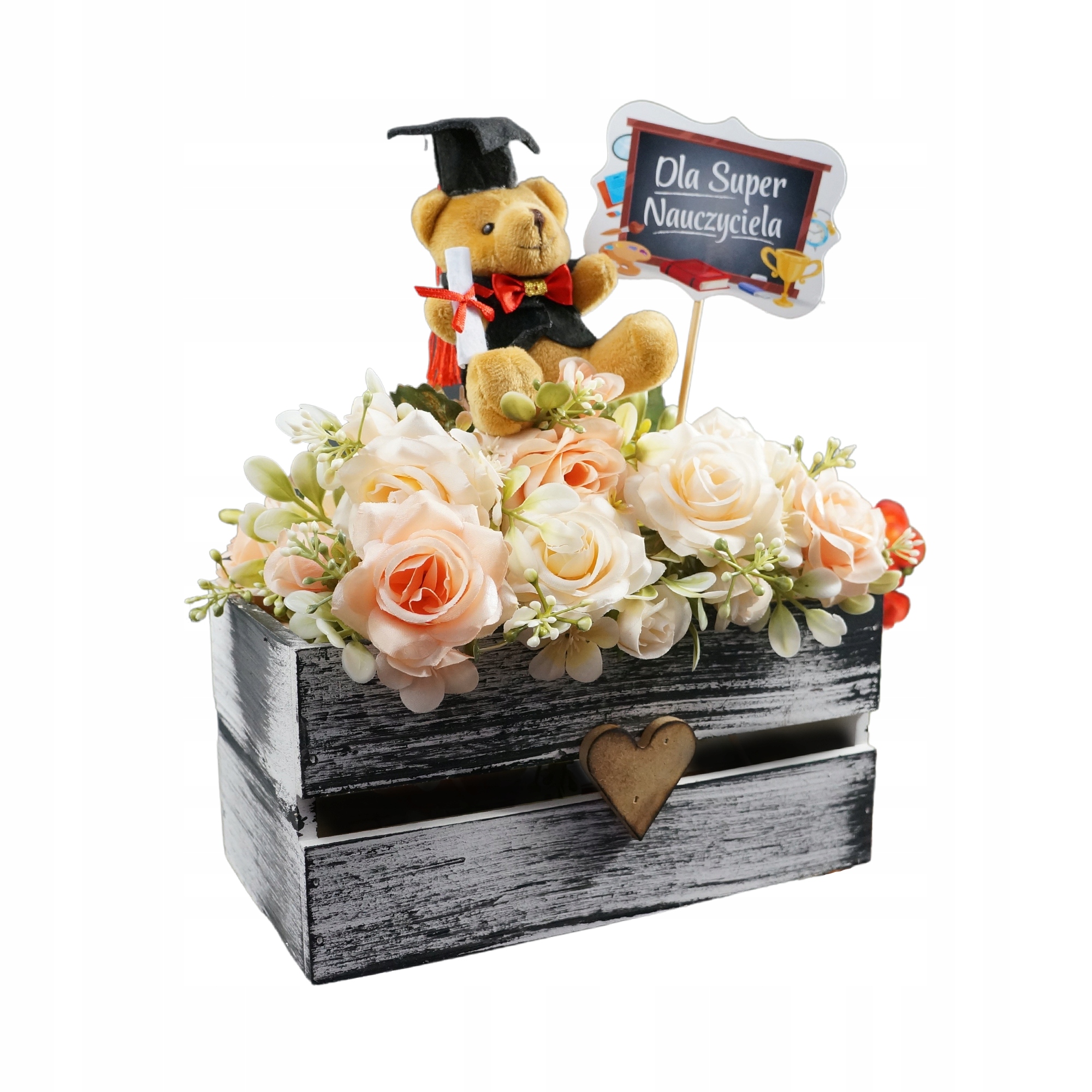 Ефектний ведмедик на козирку ідеально підходить як доповнення до квітів і подарункових наборів до Дня вчителя.