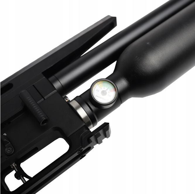 Стовбур має шумопоглинач, що входить в комплект, а під ним знаходиться повітряна вставка об'ємом 205 см3. Максимальний тиск заповнення становить 250 бар і контролюється манометром, розташований на передній частині картриджа. Звичайно, в базову комплектацію також входитьрегулятор тиску.