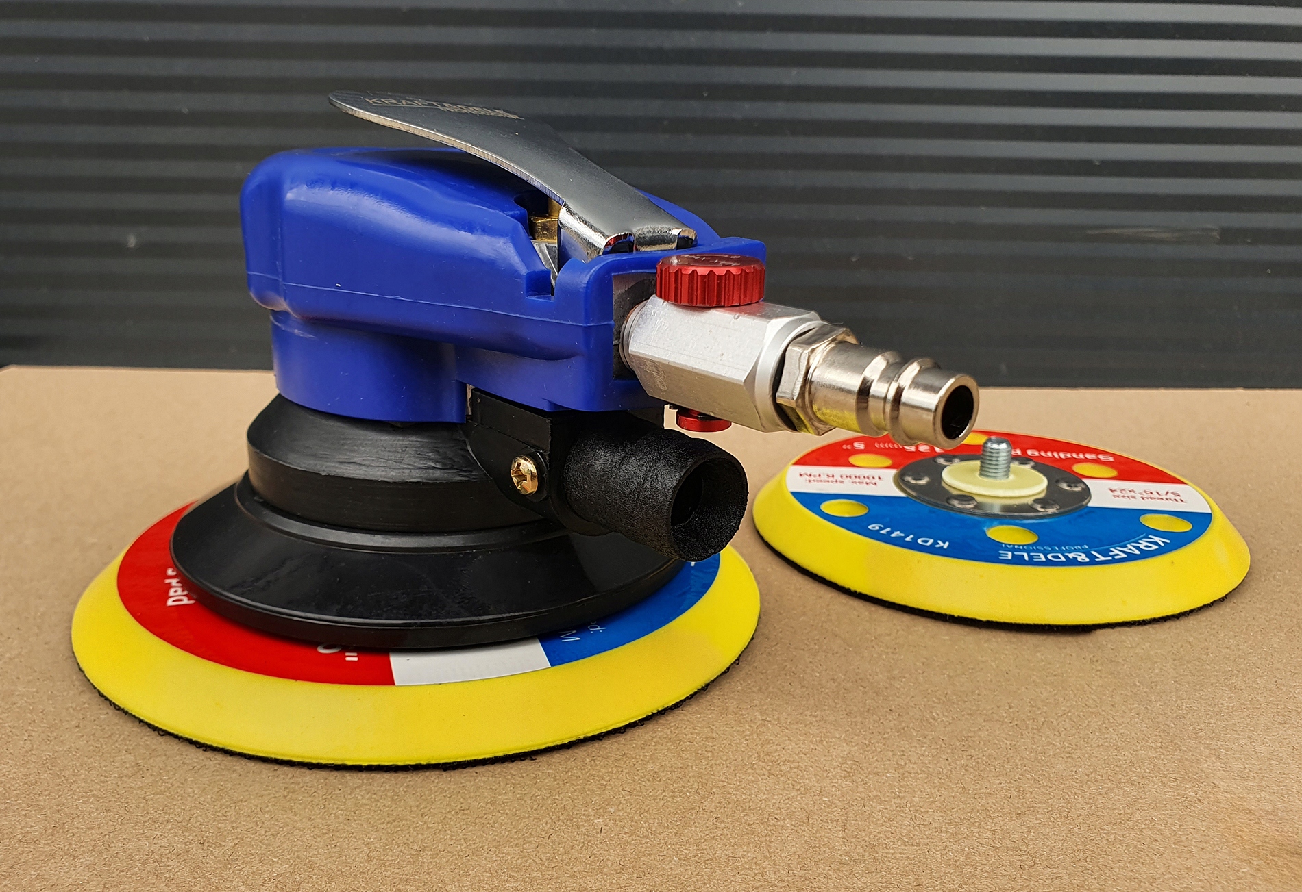 - ➡ Пневматична ексцентрична шліфувальна машина - це інструмент, що працює від потоку стисненого повітря під правим тиском. Вуд, що виводиться на гладку швидкість, що дозволяє точно вирівняти матеріали з високою якісною поверхнею. лежить у руці і не ковзає.