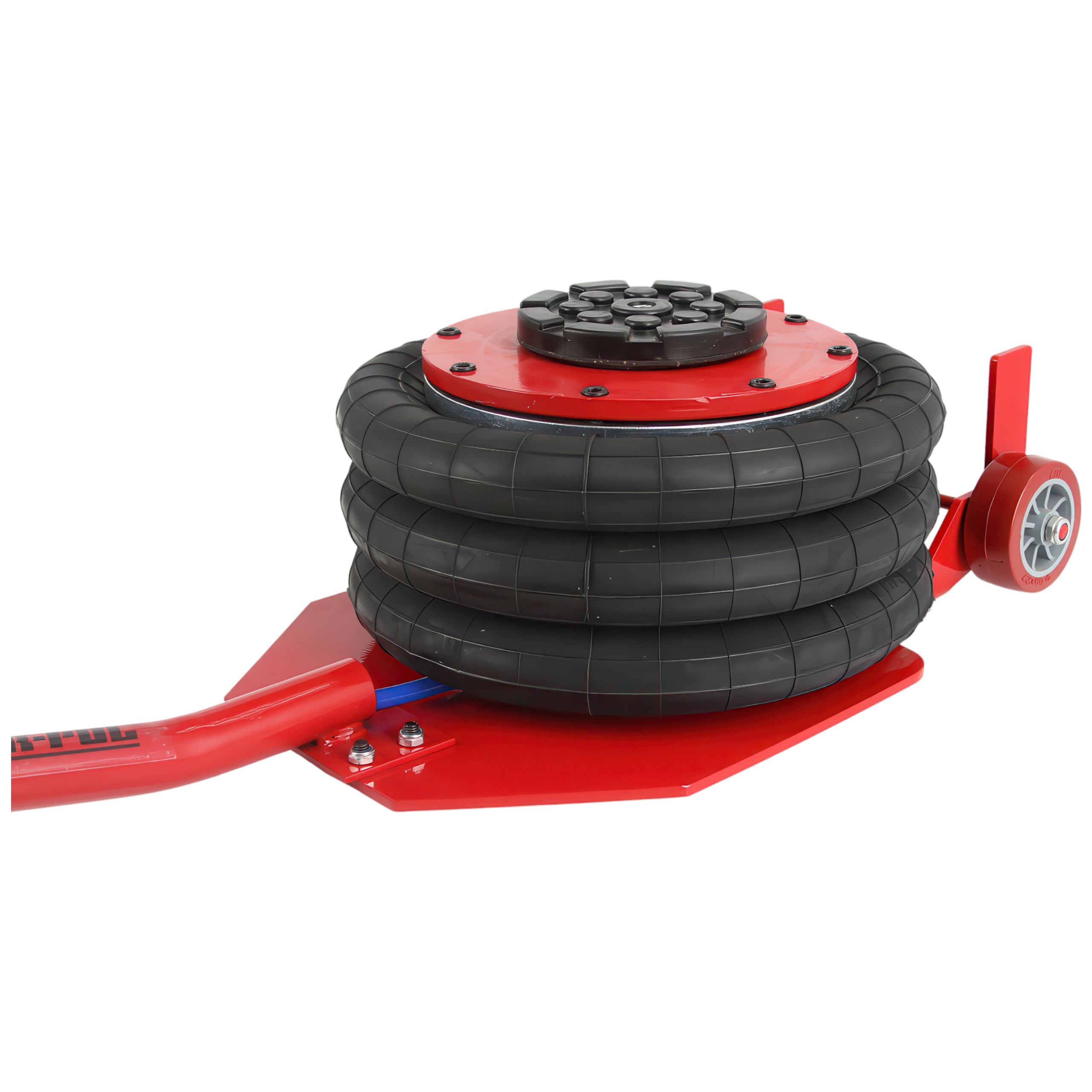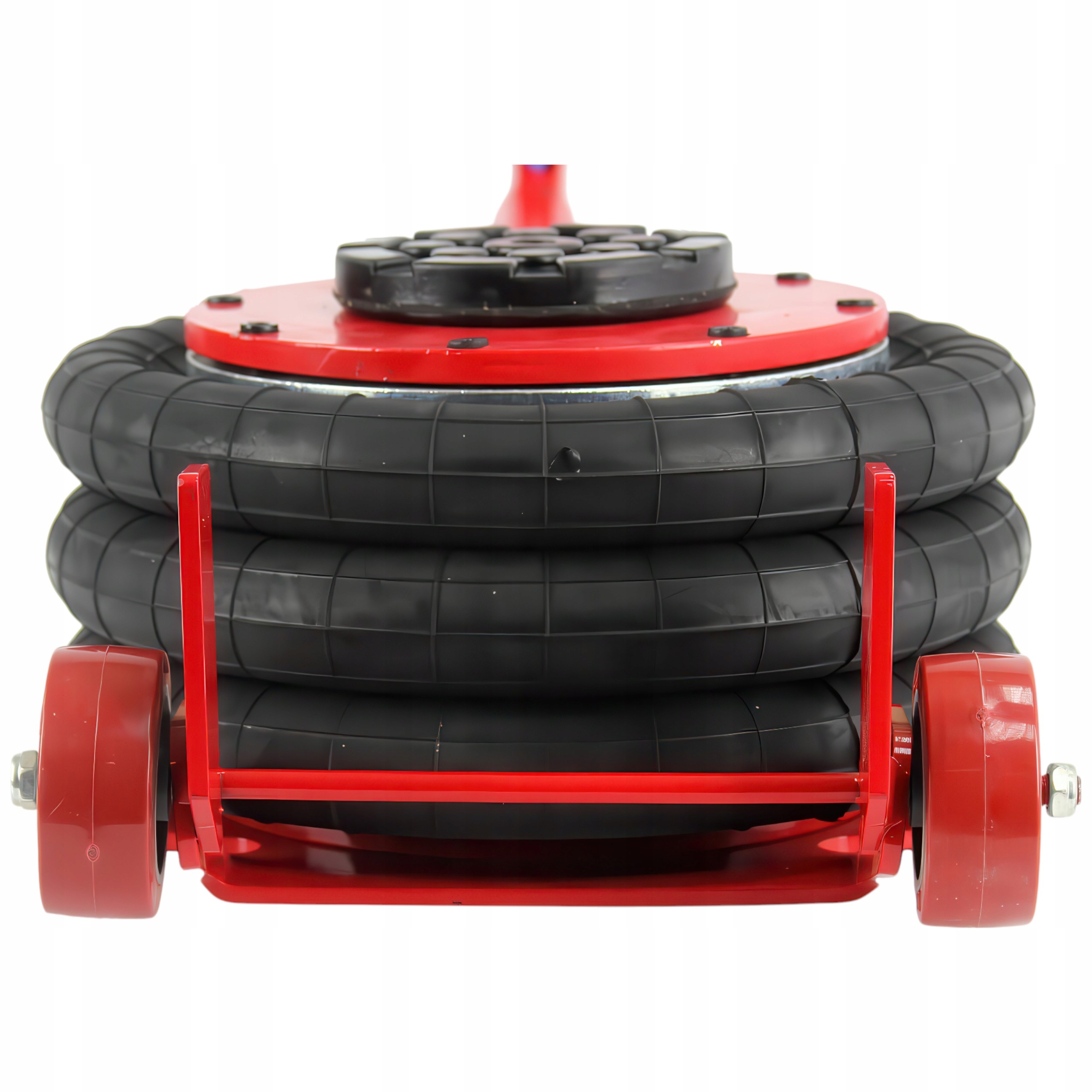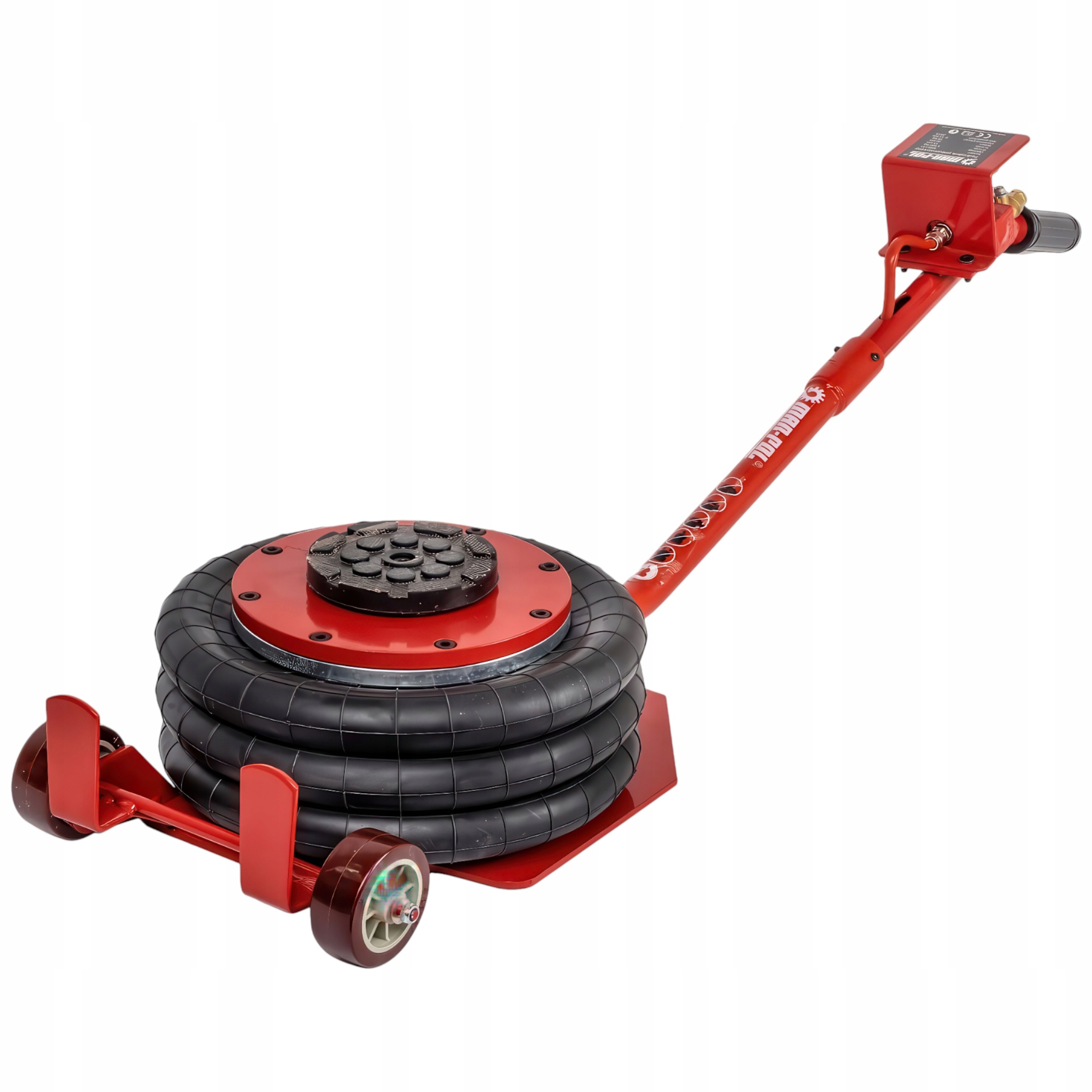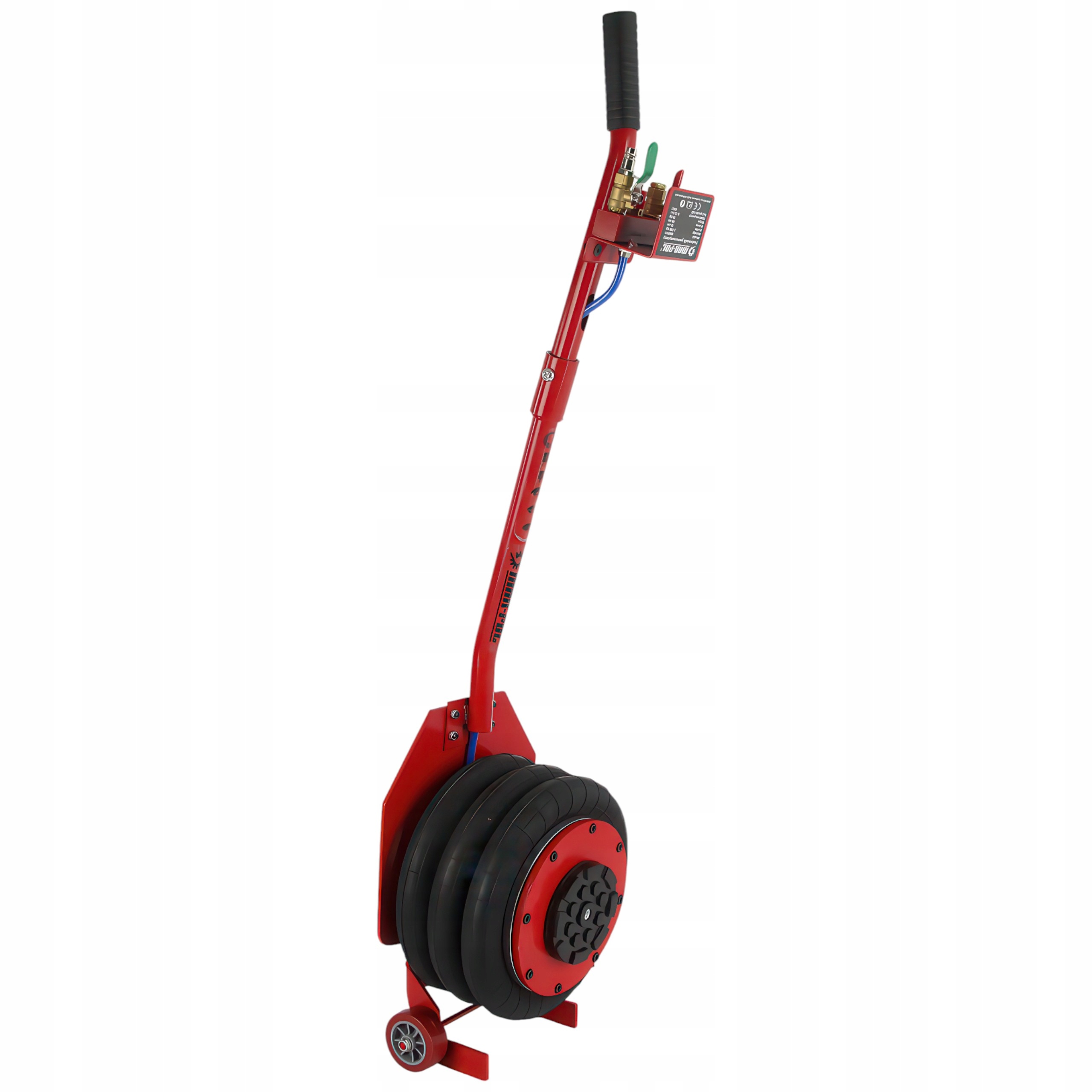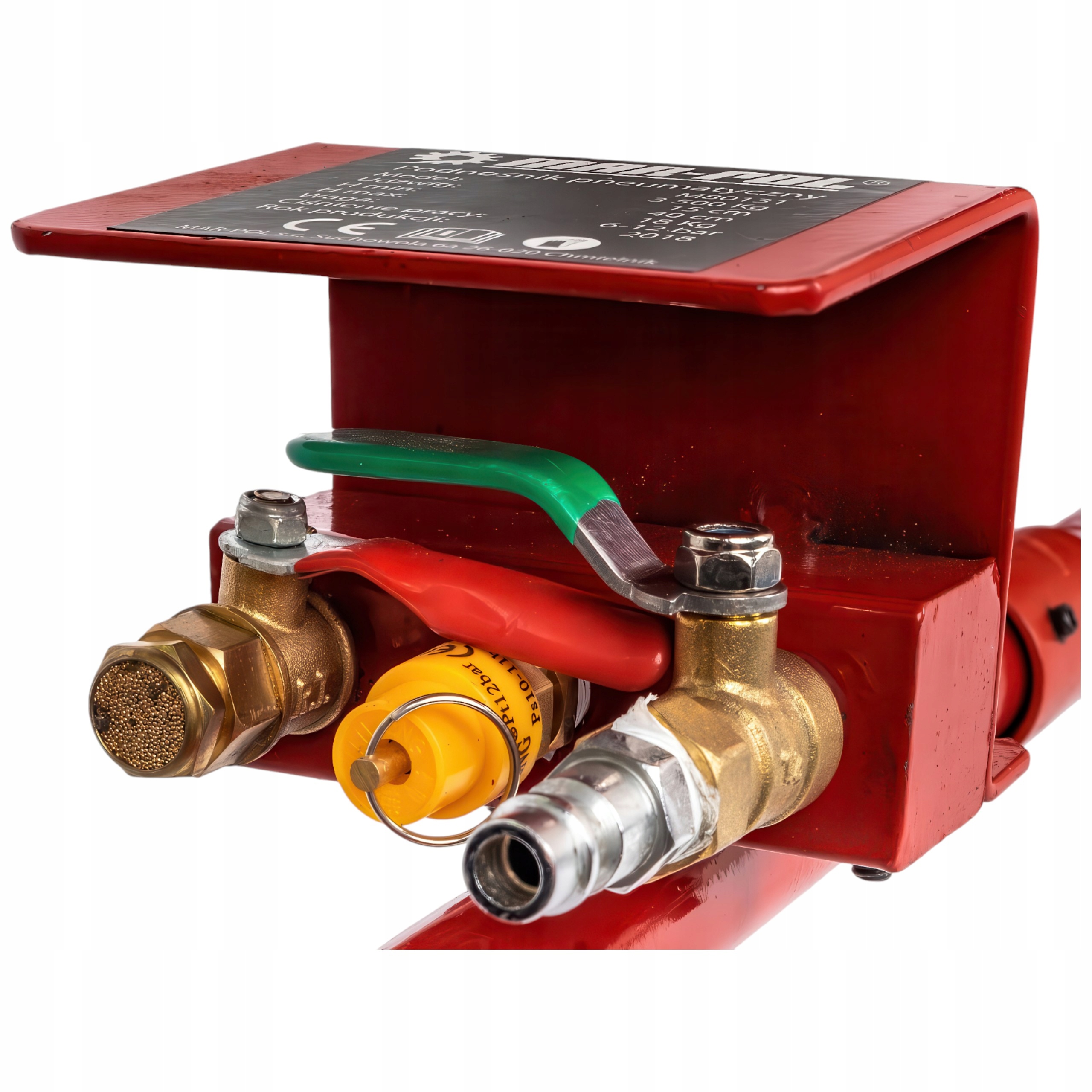 Пневматичний підйомник сніговика з підйомною ємністю до 3,5 тонн - це твердий та функціональний пристрій, призначений для інтенсивної роботи в вимогливих умовах. Конструкція виготовлена з міцної сталі, покритої порошковим покриттям, яка захищає поверхню від корозії та механічного пошкодження. Підйомник оснащений тригемерними сильфонами, виготовленими з довговічної технічної гуми, що забезпечує стабільність та ліквідність підйому. Всередині Miechów є телескопічний посібник, який відповідає за збереження вертикалі під час роботи. Ергономічна ручка 71 см має рукоятку проти слизу, виготовлену з карбіту, що полегшує маневрування та забезпечує комфорт у використанні. Колеса діаметром 60 мм, виготовлені з пластику, дозволяють легко вставити підйомник під транспортний засіб. Кулькові клапани, що використовуються з барвистими важелями, дозволяють інтуїтивно зрозуміло - зелений важіль використовується для джерела живлення, червоного для зливу повітря. Побудований клапан безпеки захищає сильфон від пошкоджень у разі перевищення допустимого робочого тиску від 5 до 10 бар. Весь важить 18 кг, а мінімальна висота підйому - 15 см, а максимум досягає 40 см. Завдяки спеціально розробленій основі підйомник можна зберігати у вертикальному положенні, що економить місце в майстерні чи гаражі.