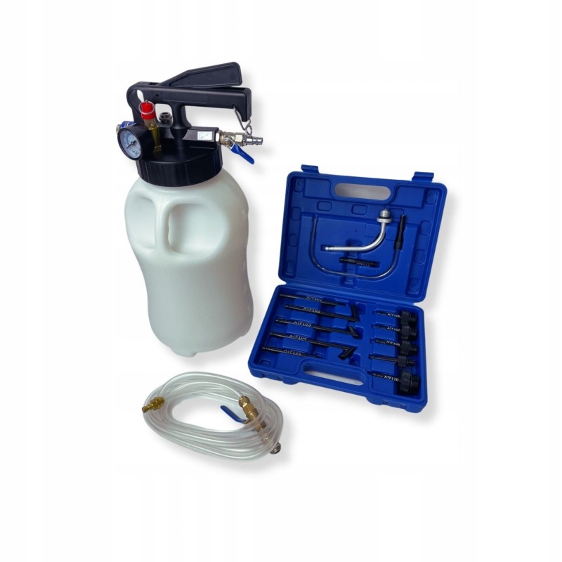 використовується для відставки рідини ATF в транспортних засобах. Доповнення в BMW, Ford, Toyota, Altis, Benz, Skoda, VW, Lexus, Volvo, Honda та інших автомобілях. Оснащений пневматичним контролем. У нього є гвинтовий клапан, який дозволяє легко змінити видобуток або дозування. Включає нові адаптери на 14 дотику.