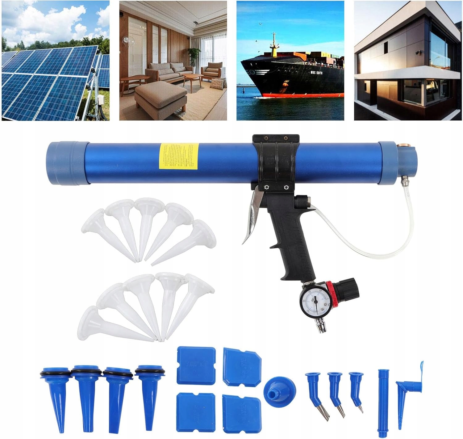 ПНЕВМАТИЧНИЙ ПІСТОЛЕТ ДЛЯ СИЛІКОНОВОЇ УПЛОТНЮВАЛЬНОЇ МАСИ 600МЛ НАБІР