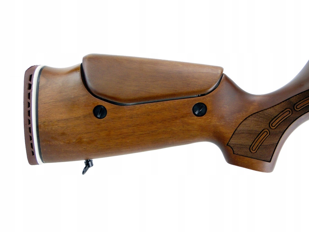 Дерев'яний приклад з пазами, профільований для правшів і лівшів, має регульовану висоту щокової подушечки, завдяки якій ми можемо зручно розташуватися під відкритими прицілами та оптикою.