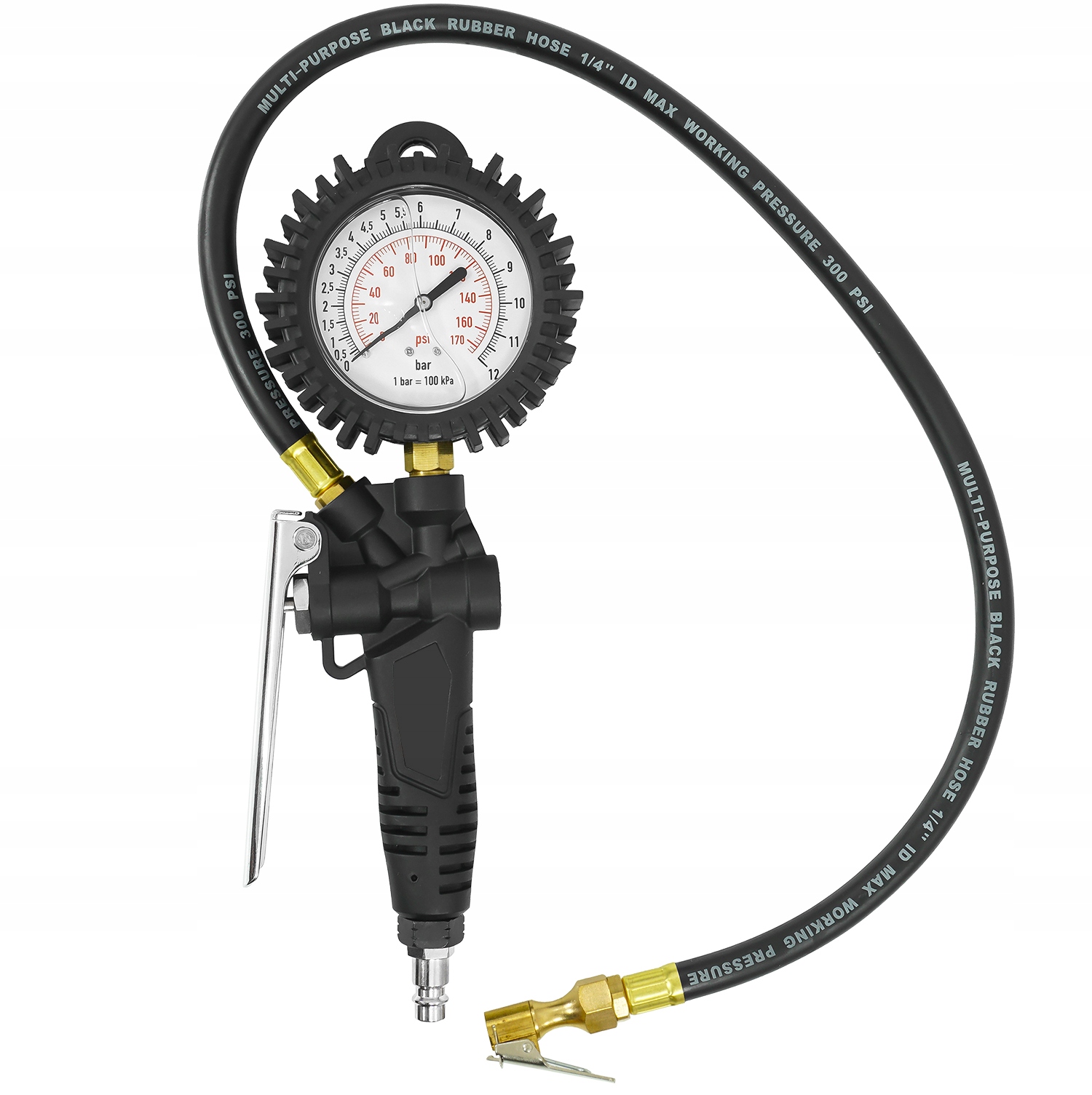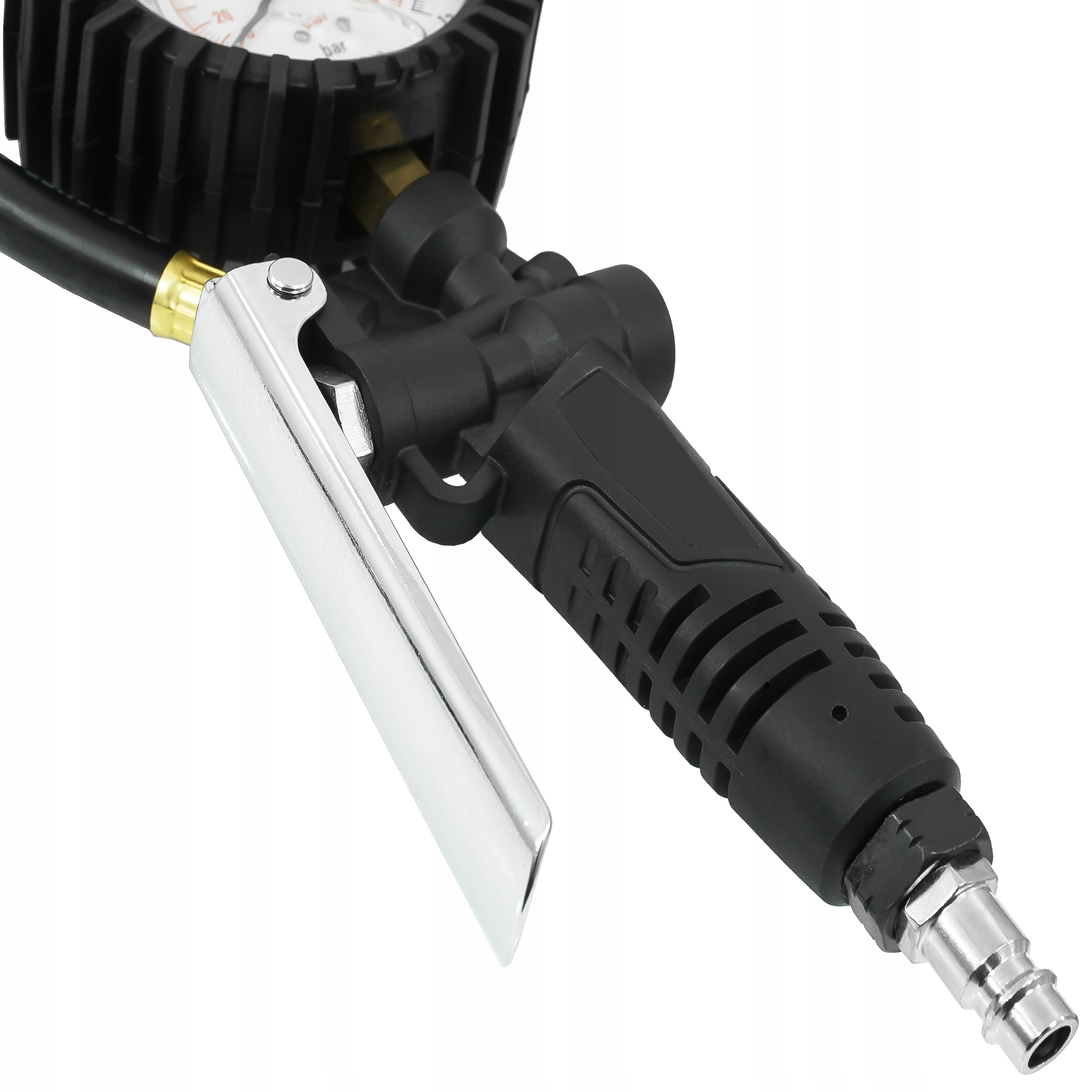 Професійний і надійний пістолет для накачування шин з манометром. Завершується стандартним штекером, який відповідає швидкому роз’єму. Годинник захищений прогумованою кришкою, що захищає його від можливих пошкоджень. Рушниця виготовлена з високоякісних матеріалів. Ідеально підходить для автомайстерень і шиномонтажних майстерень.