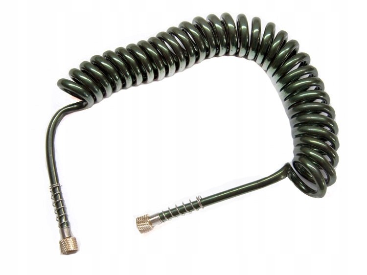 аерографівспіральний шланг для аерографа. Працює під час роботи. Оснащений пружин, щоб запобігти вигинам на кінцях. Спіраль розтягується до 1-2 м. Шапки оснащені гумовими ущільнювачами, які гарантують жорсткість.