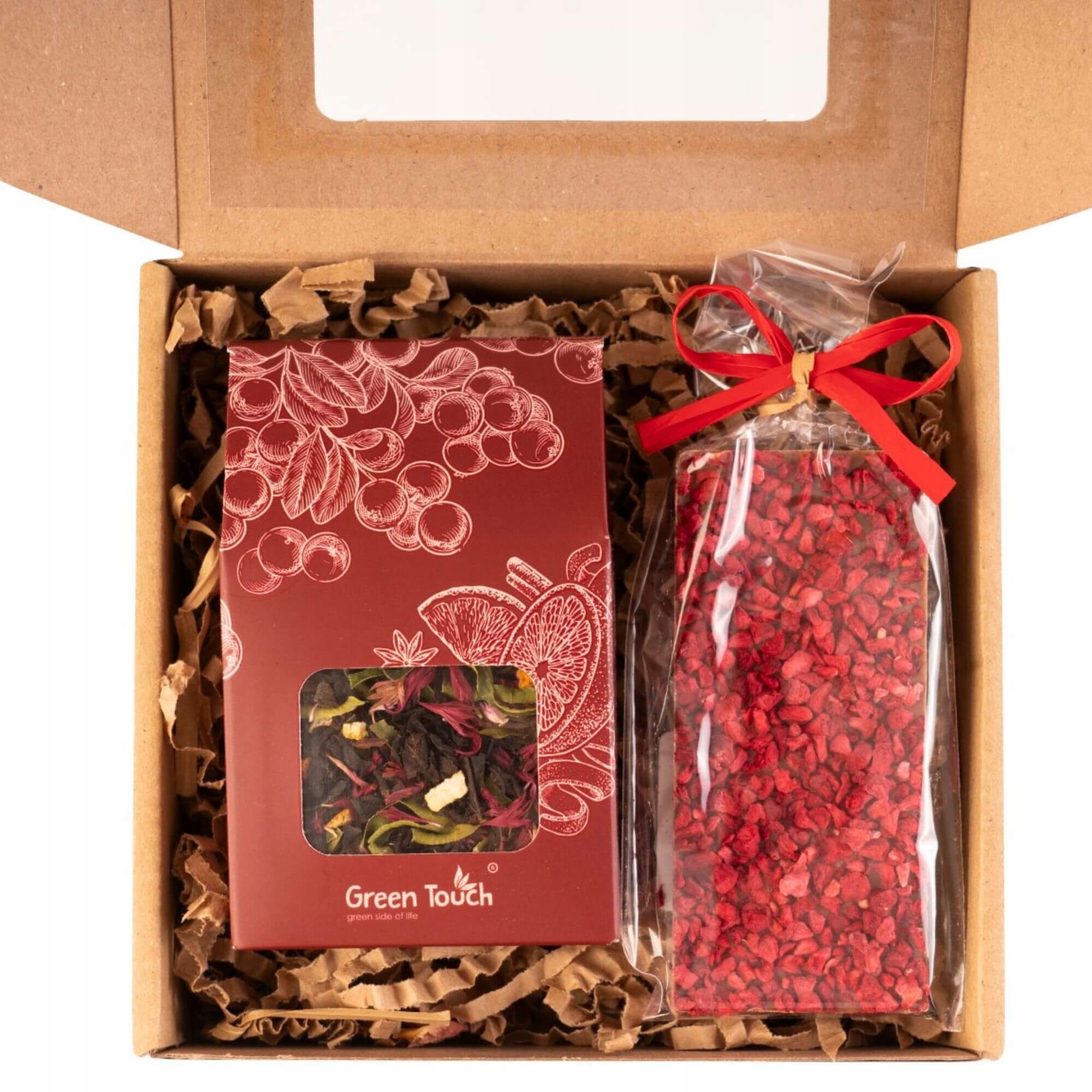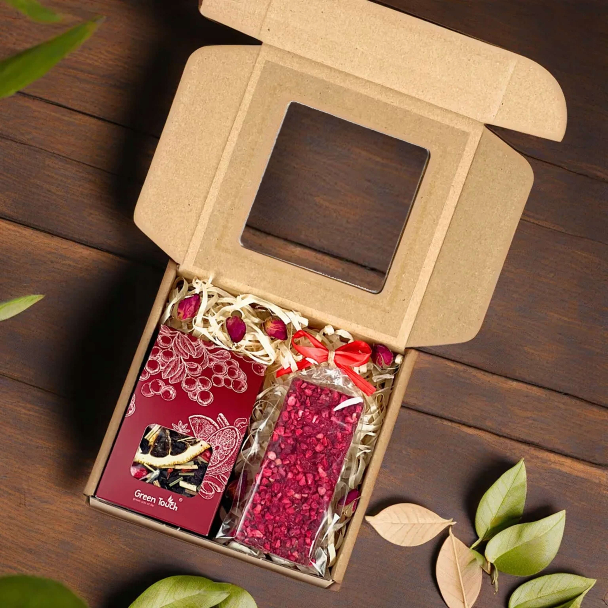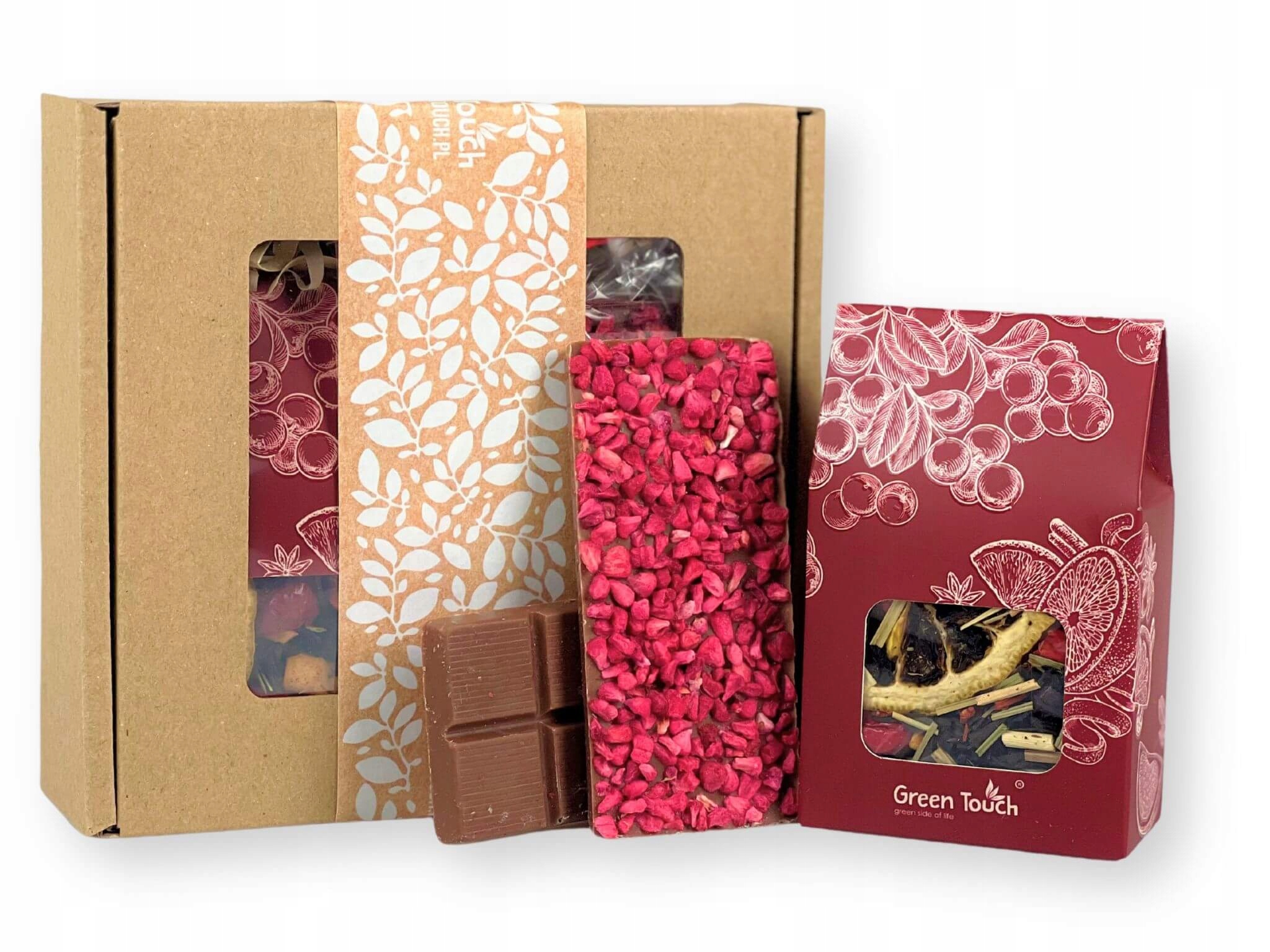 Чудовий подарунок та чудова альтернатива популярним квітам. Набір чаю з шоколадом Крафт, все в червоному мотиві.
