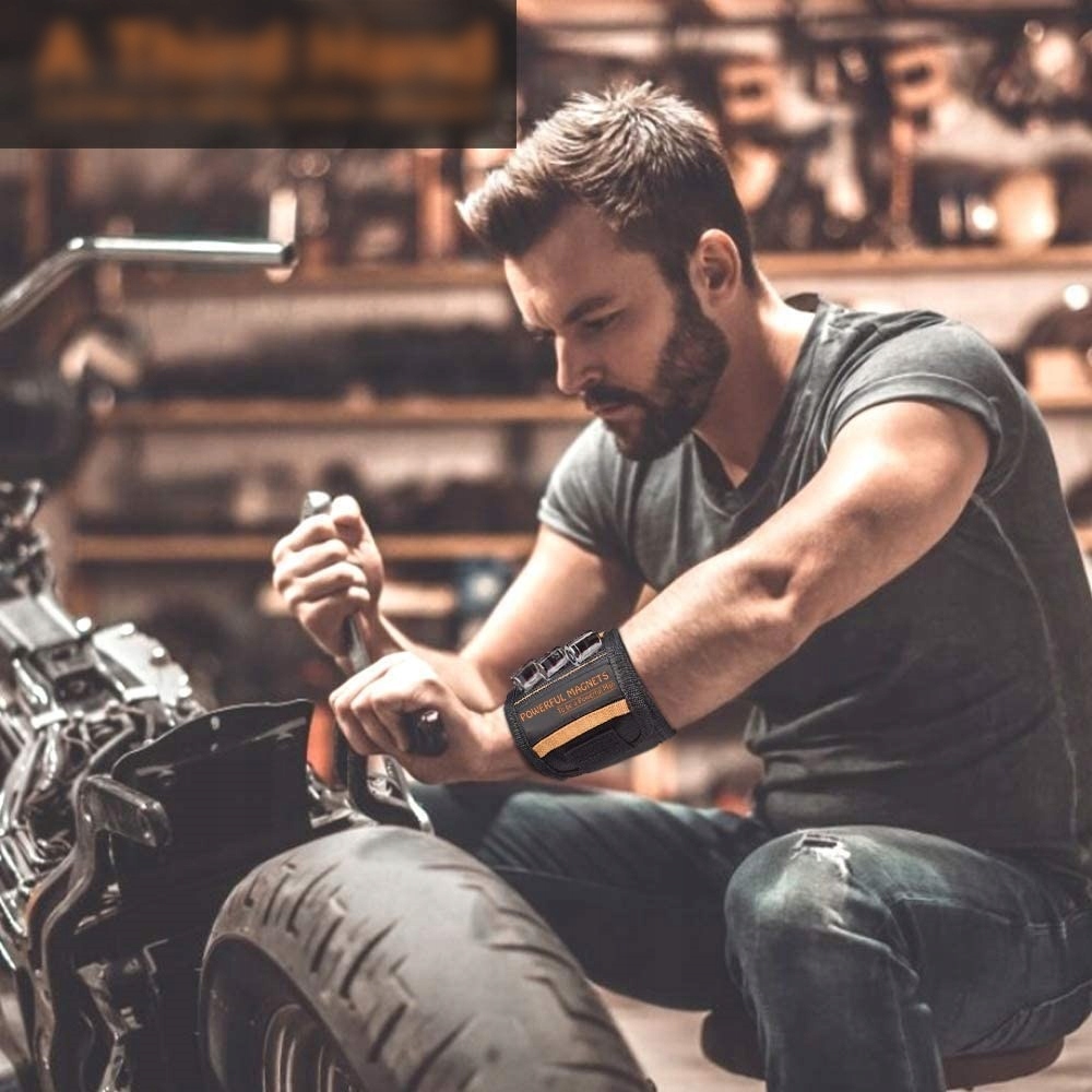 Ідеальне пошиття ремінця за допомогою 15 надсильних магнітів робить магнітний ремінець обертаючим майже все зап’ястя. Магнітний браслет із великою поверхнею дає змогу легко зберігати та мати доступ до магнітних предметів, таких як гвинти, цвяхи, насадки для викруток, свердла, гайки, шайби та болти тощо, а також має дві кишені різного розміру (корисно для тих, хто не -магнітні предмети).