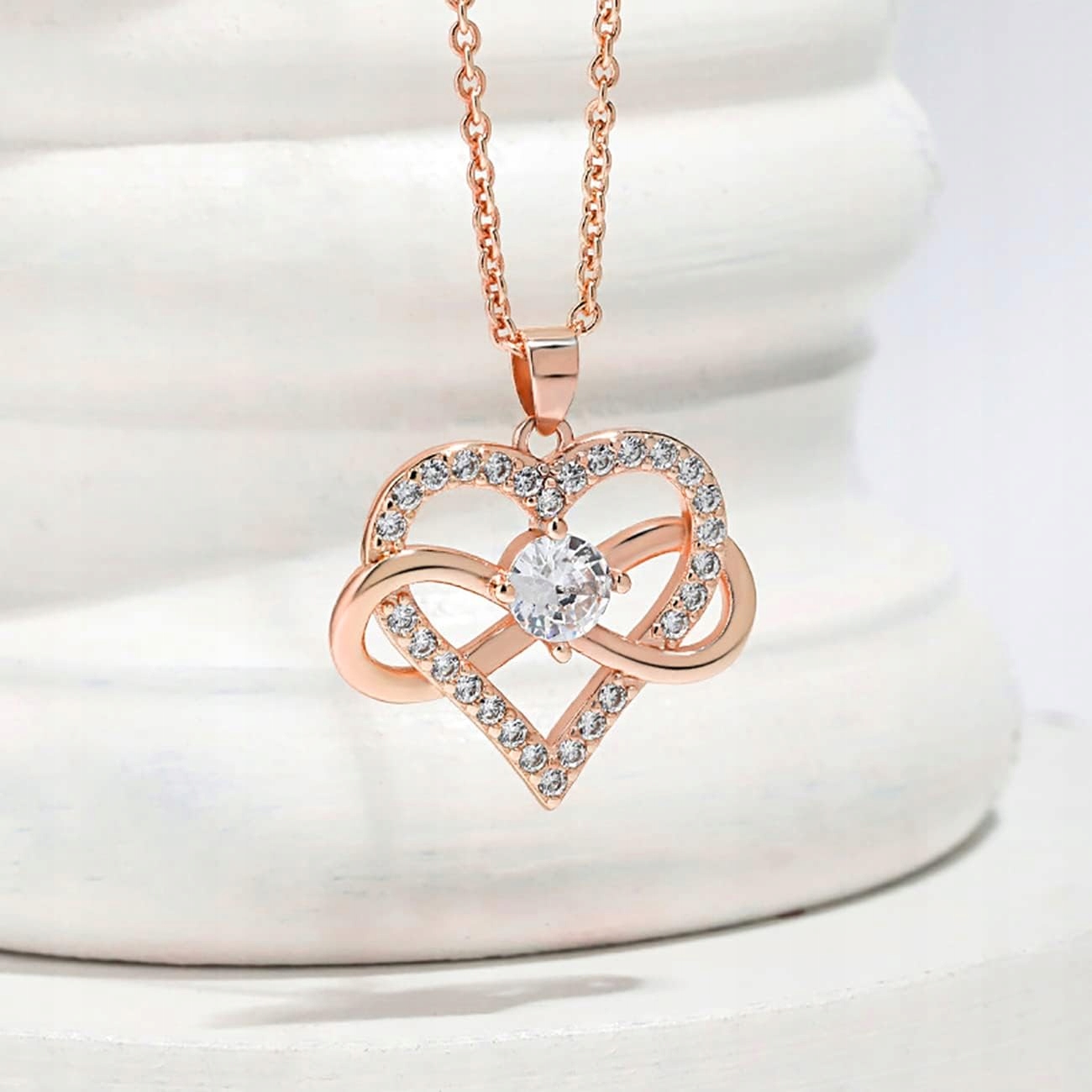 ❤️Нескінченне серце,Це намисто з рожевого золота розроблено з нескінченним кулоном у вигляді серця, що символізує обітницю кохання, вічності , вірності та віри в кохання.