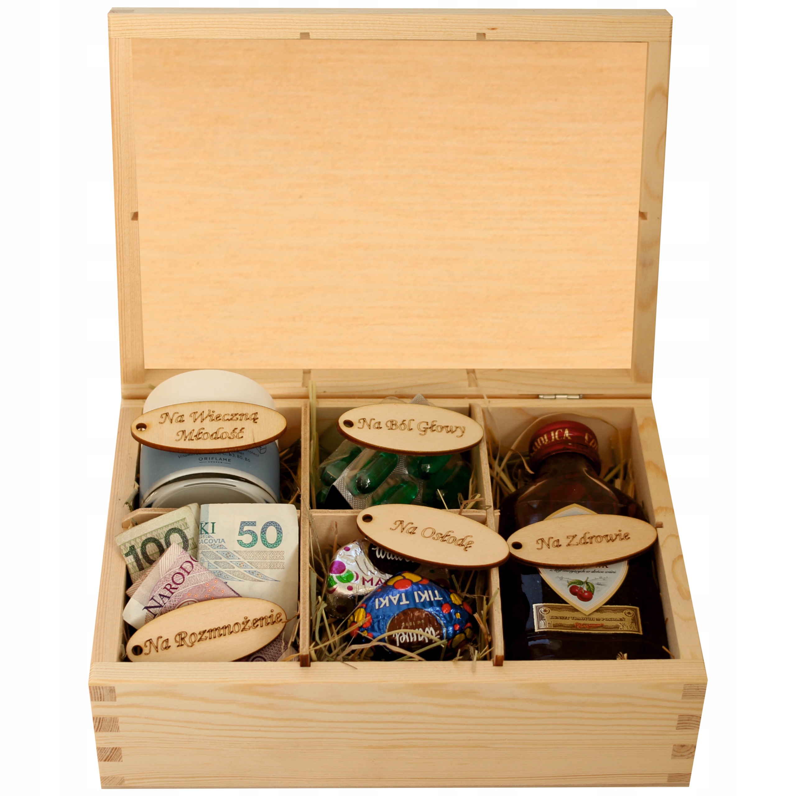 - ім'я іменинниці (у модифікованій формі ЮСТИНА, ДАГМАРИЯ, ОЛЯ, МАРТА , WERONIKA, MAŁGORZATA, SANDRA ),