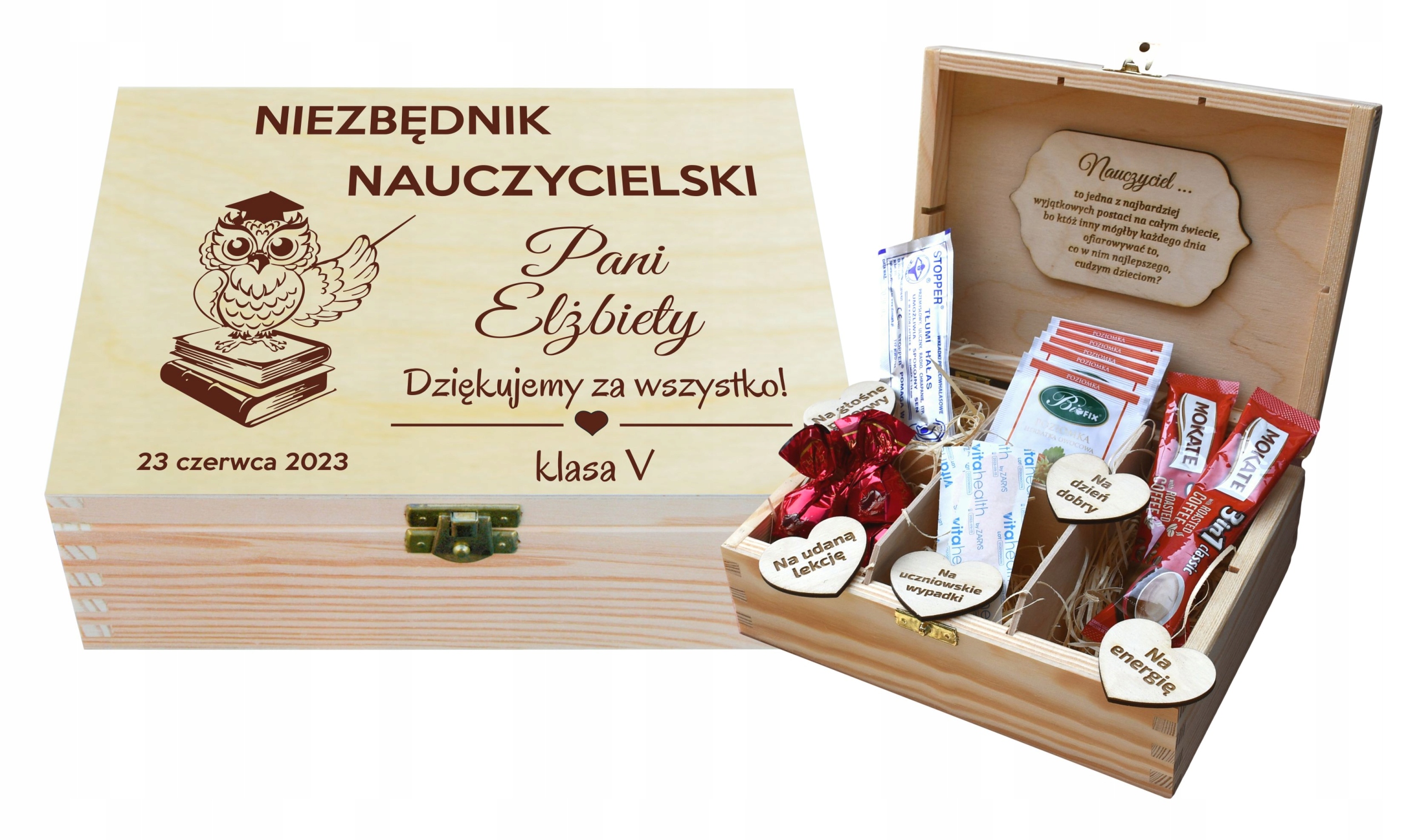 Необхідні речі для вчителя - красива коробка з гравіюванням, наповнена деревною вовною. Здивуйте свого вчителя та подаруйте йому елегантний практичний подарунок. Ідеальний варіант на кінець навчального року!