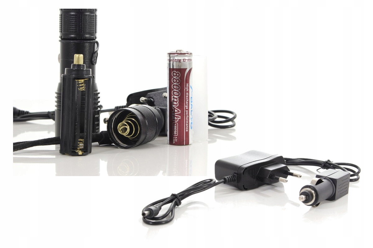 •СВІТЛОДІОДНИЙ ЛІХТАРИК•БАТАРЕЯ 18650•КОРЗИНА ДЛЯ АКУМУЛЯТОРІВ 3xAAA•ЗАРЯДНИЙ ПРИСТРІЙ ОТ МЕРЕЖІ•ЗАРЯДНИЙ ПРИСТРІЙ 12V АВТОМОБІЛЬНИЙ •