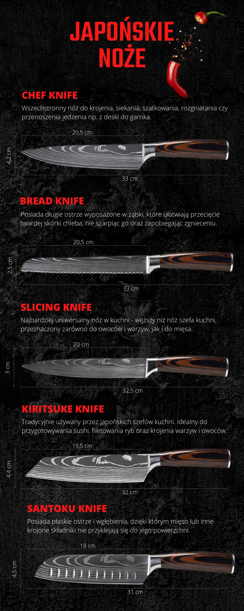 8x ЯПОНСЬКИХ НОЖІВ - НАБІР - ВИСОКОВУГЛЕЦЕВА СТАЛЬ