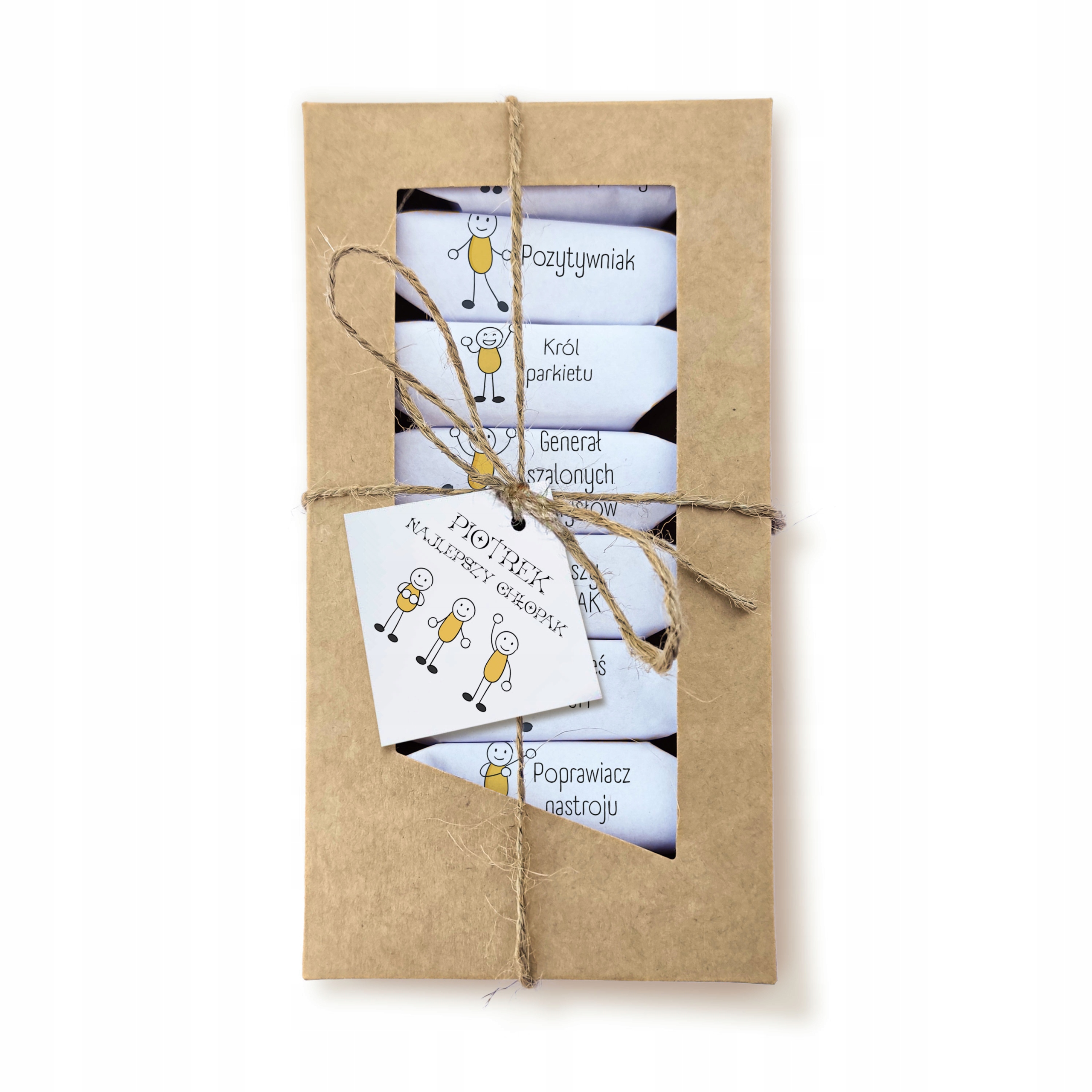Екокоробка натурального коричневого кольору, всередині 8 смачних молочних помадок, перев’язаних джутовою ниткою. У набір входить листівка з Вашою персоналізацією - ідеальний маленький подарунок прямо від щирого серця!