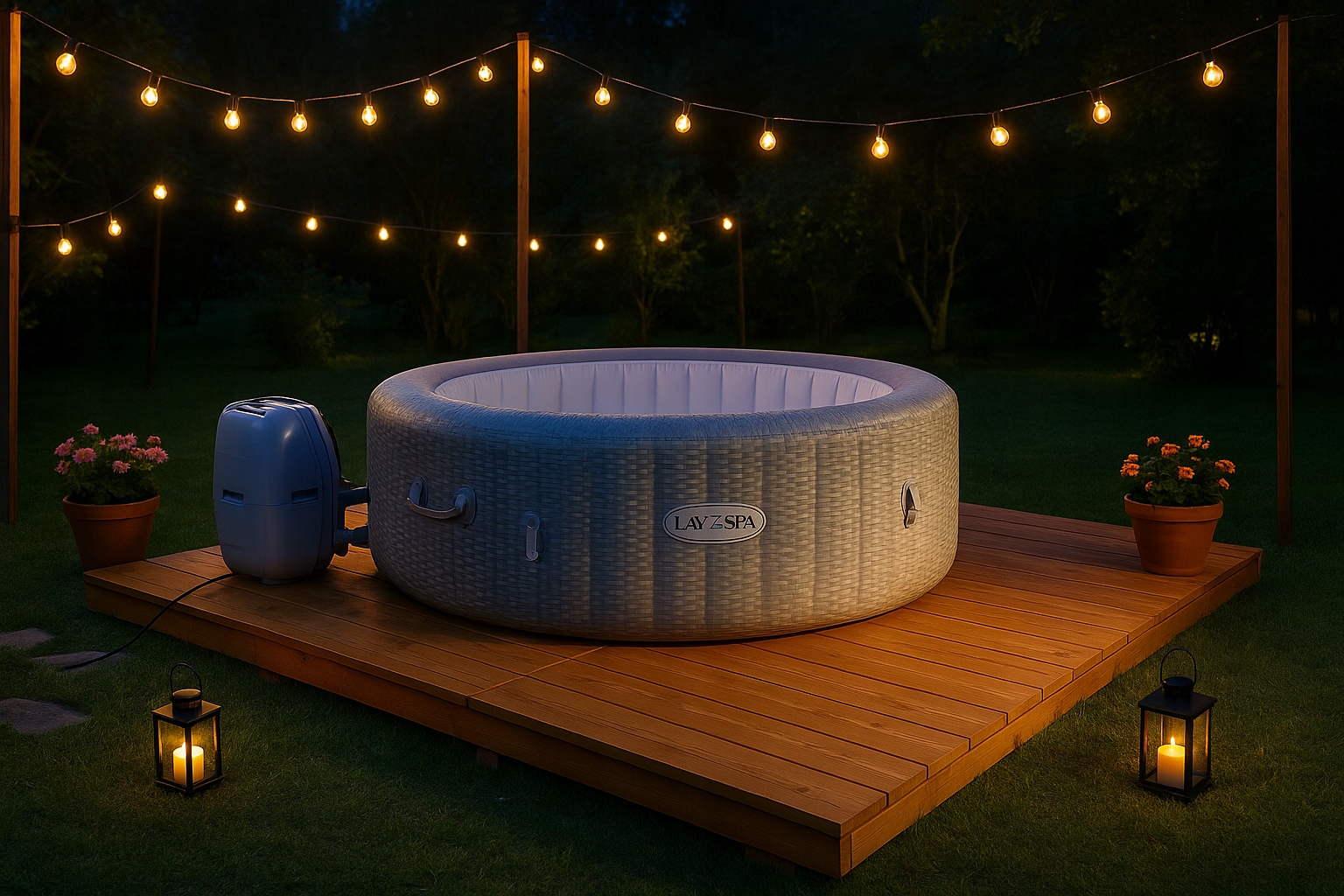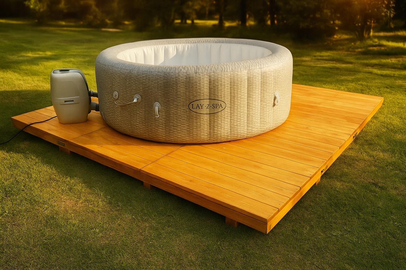 Платформа ідеально підходить для джакузі або басейну, ми можемо усвідомити будь -який розмір платформи в будь -якому кольорі. Деревина захищена деревною олією, яка захищає її від поглинання води.