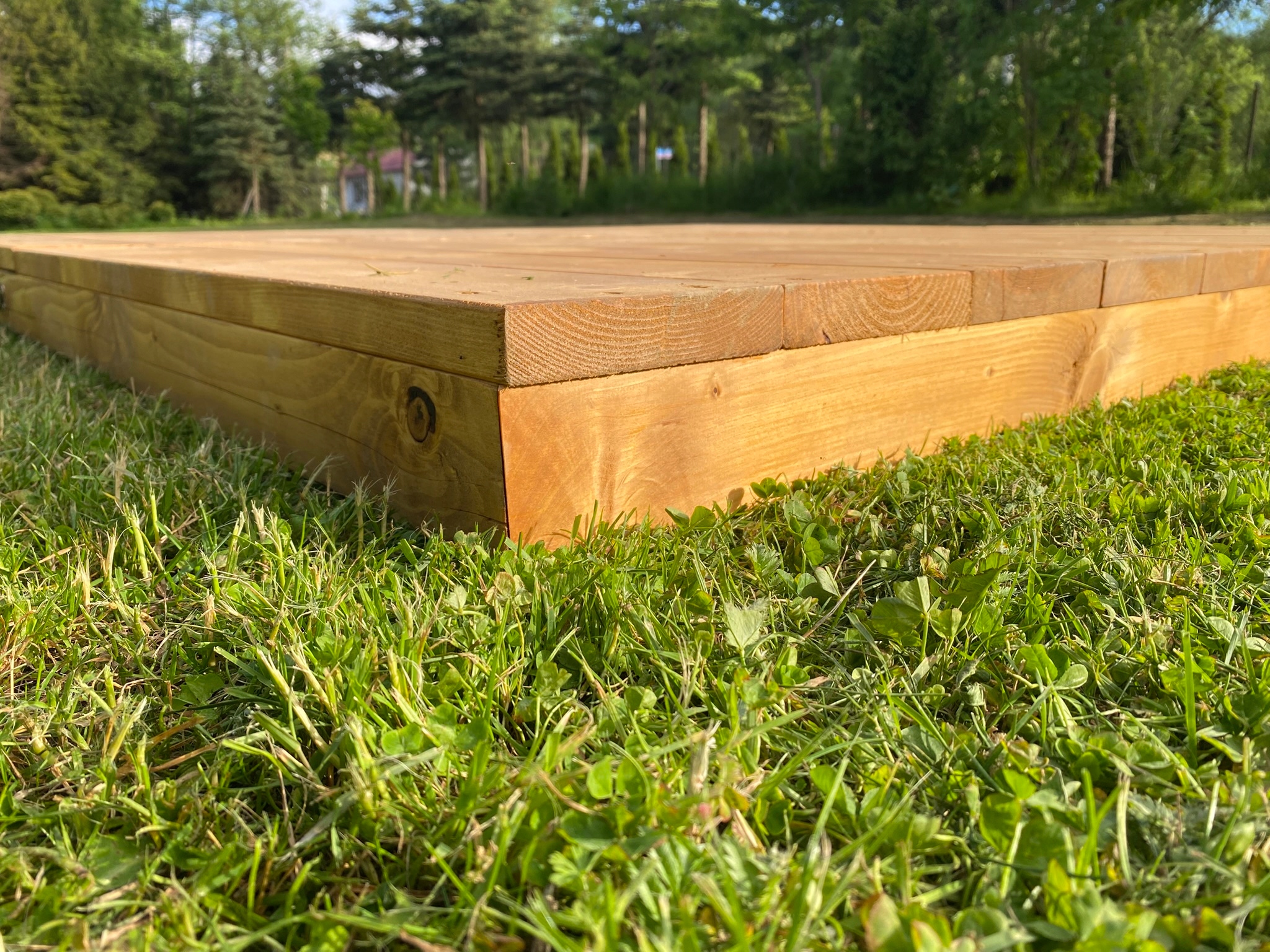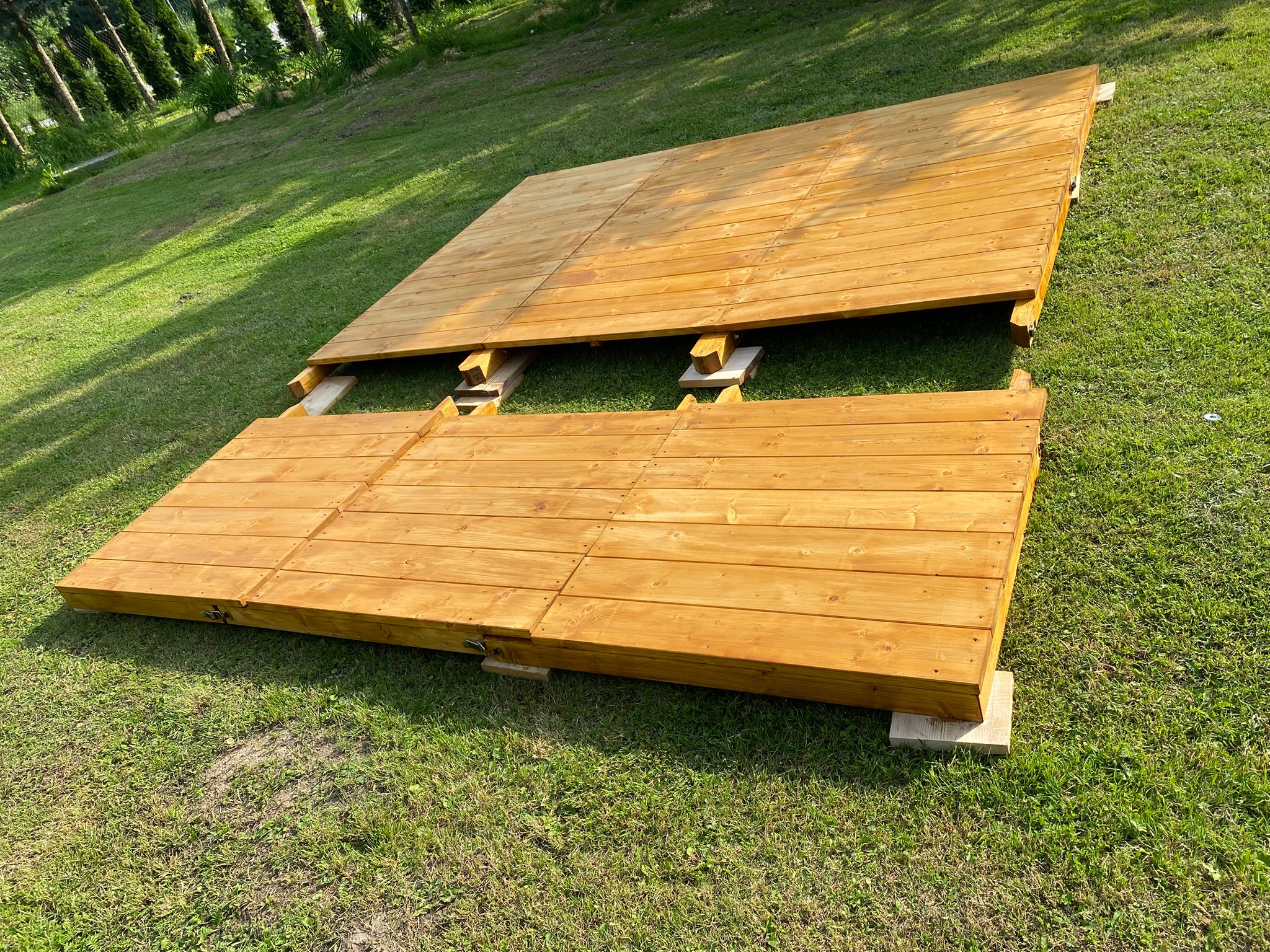 Пропозиція стосується 9 м2, тобто платформи 3 м х 3м. Колір, що пропонується на цьому аукціоні, - це дубовий колір . Цей розмір найкраще працює як платформа для садового джакузі або садового балансу тощо. Платформа захищена деревною олією, яка захищає її від поглинання вологи.