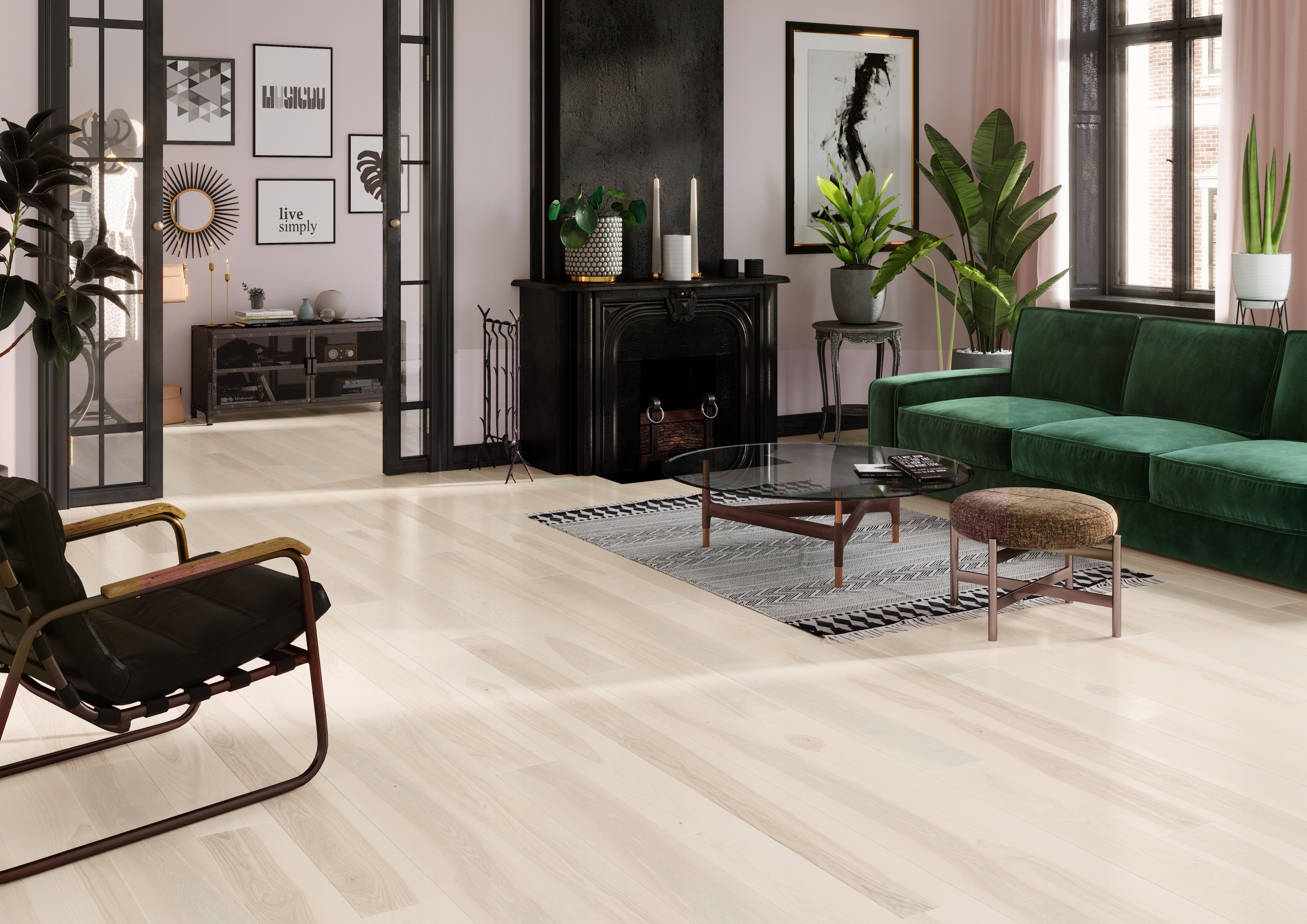 Підлога з ясена цінується за її гарний зовнішній вигляд. Дошки з привабливим малюнком деревини стають прикрасою підлоги та чудовим фоном для виставлення меблів. Вони добре працюють як в нових будинках, так і в квартирах під час ремонту - натуральна деревина воістину універсальна і добре поєднується з деталями старих будівель.