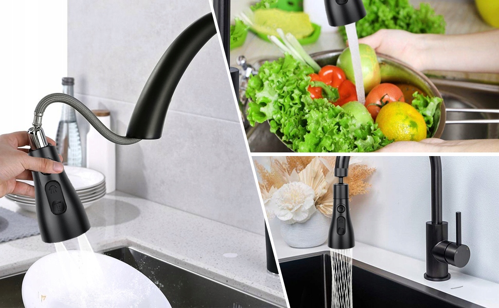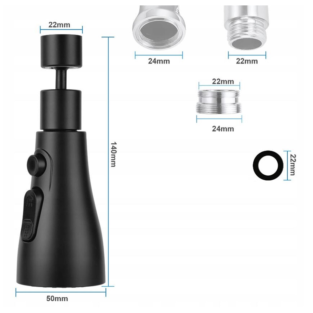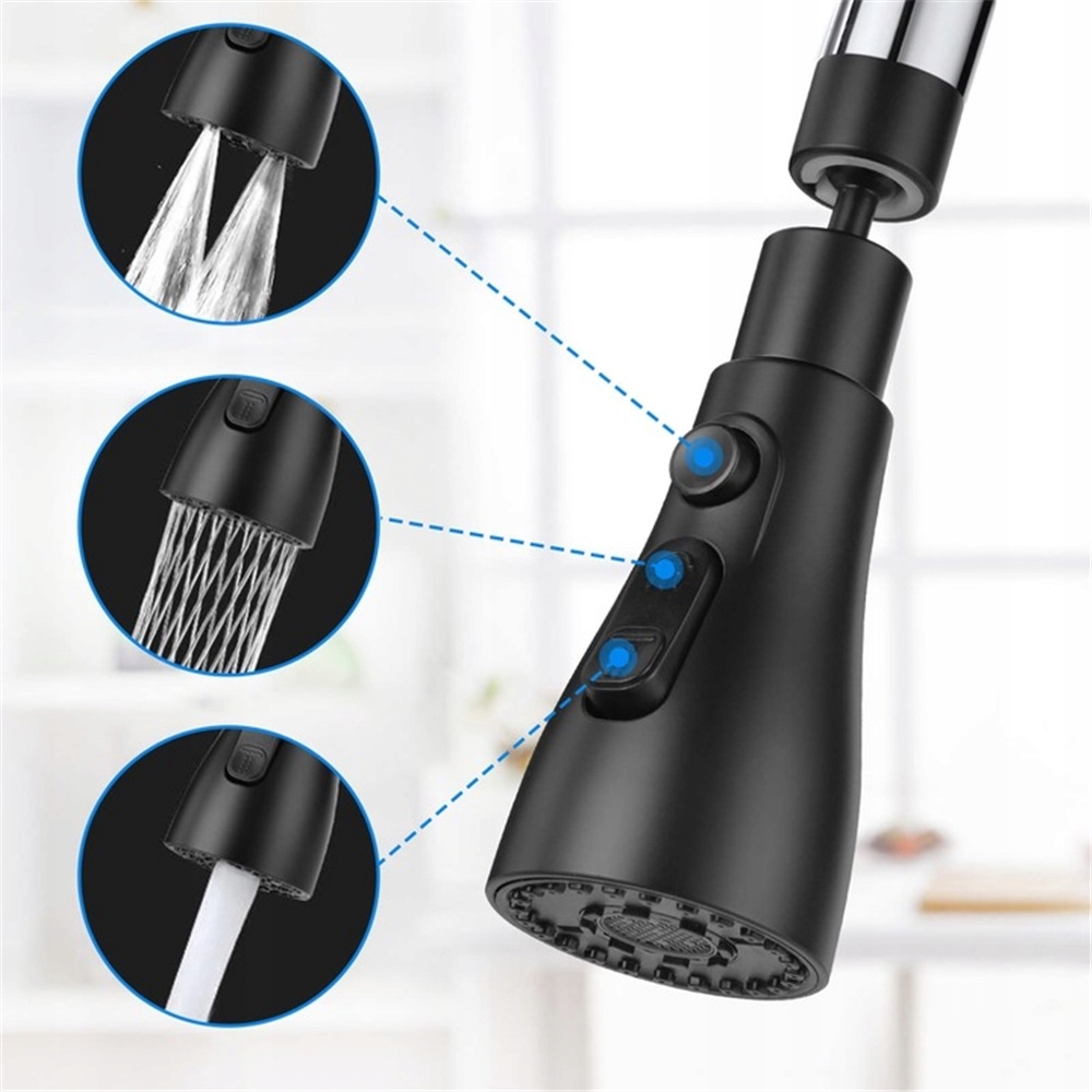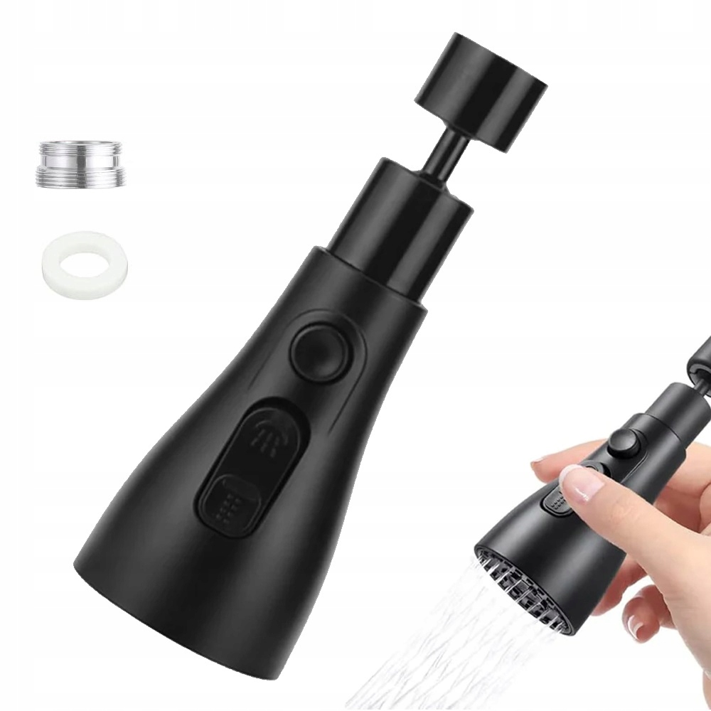 ПОДОВЖЕННЯ КУХОННОГО КРАНА АЕРАТОР АЕРАТОР 3 ФУНКЦІЇ 360° ЧОРНИЙ