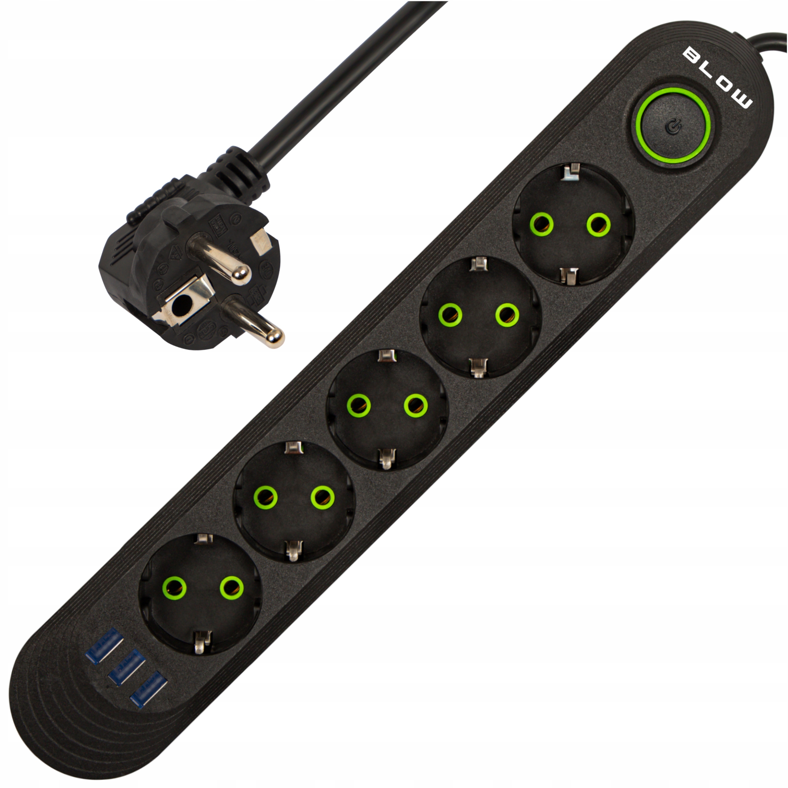 ПОДОВЖУВАЧ ПЛАНКИ ЖИВЛЕННЯ ВИМИКАЧ 3м 3x USB 5 РОЗЕТОК