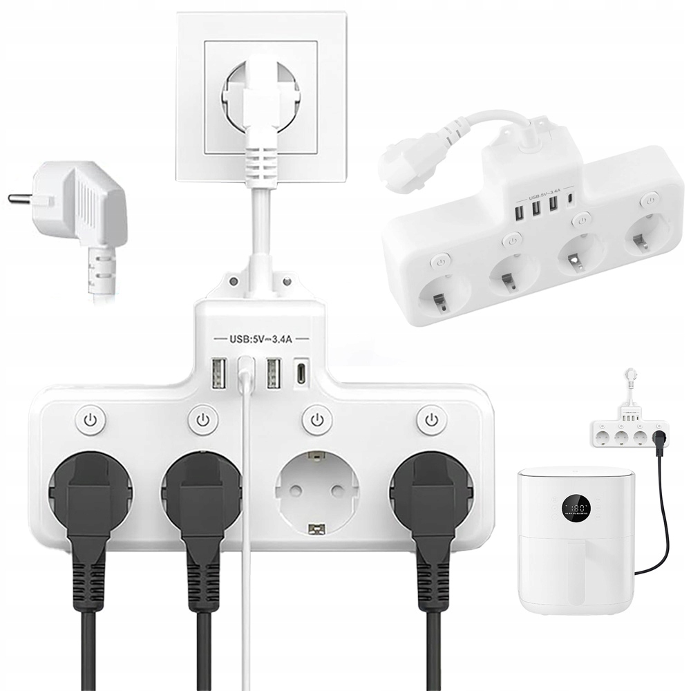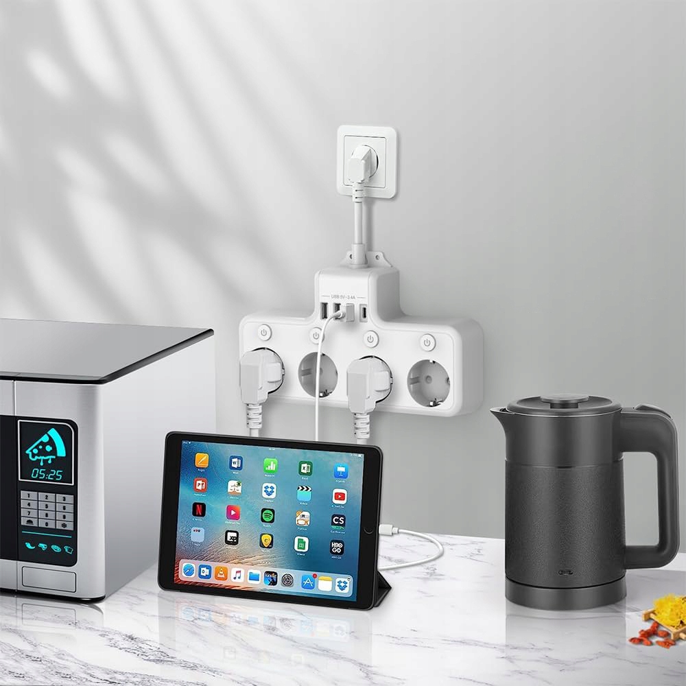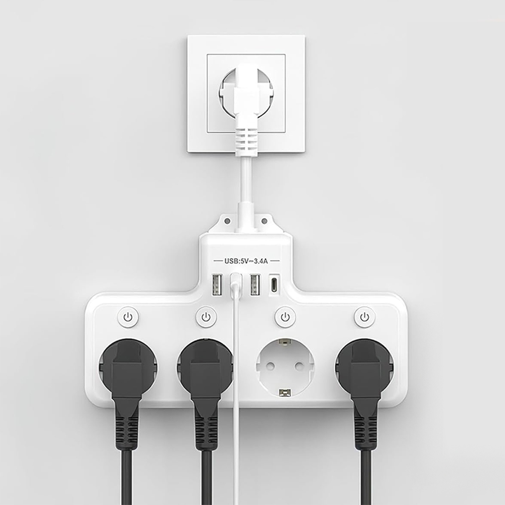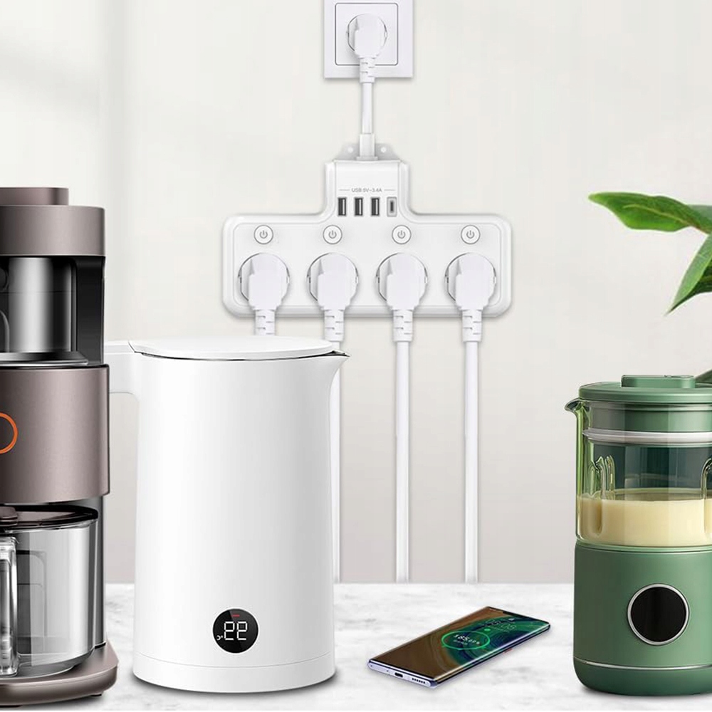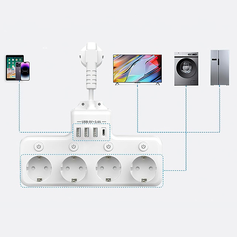 -📍📍Оснащений 4 незалежними вимикачами, усі чотири розетки можна вмикати та вимикати за допомогою відповідної кнопки.
