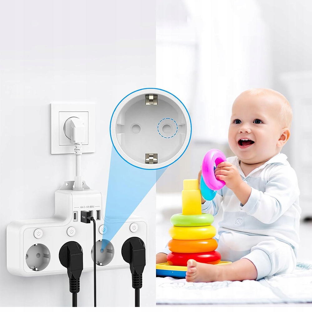-📍📍Вбудовані захисні дверцята запобігають випадковому торканню дітей до розетки та запобігають потраплянню в неї предметів.