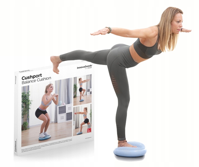 Балансуюча подушка з повітряною камерою, яка перетворюється на нестабільну платформу, що дозволяє виконувати багато силових і балансувальних вправ, які дуже корисні для вашого здоров’я (основне тренування).