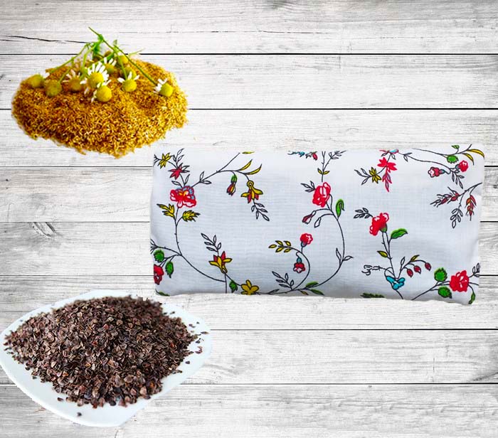 Подушка для очей, наповнена сумішшю гречаного лушпиння, гірчиці та ромашки