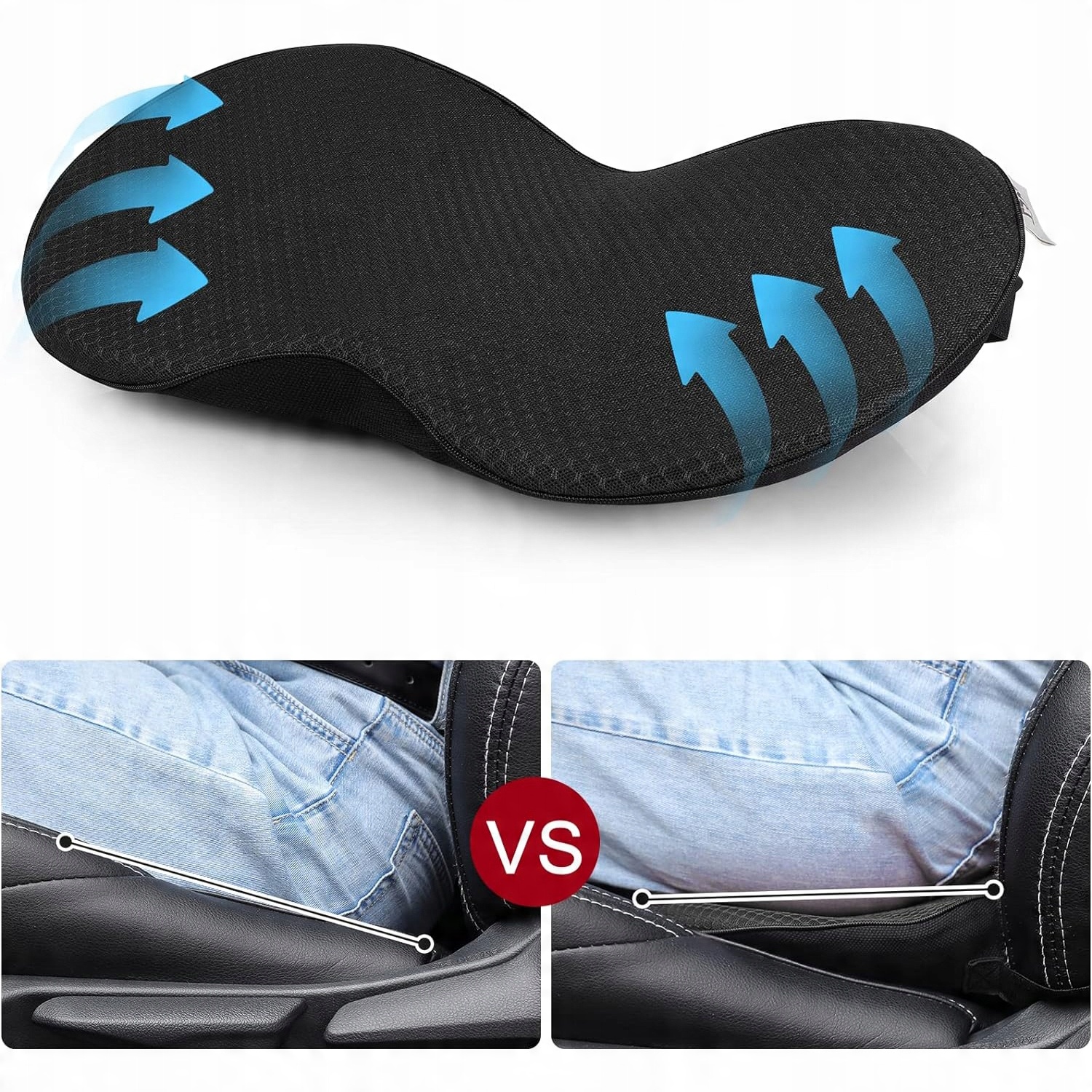 ➡️ ПОДУШКА СИДІННЯ: Подушка автомобільного сидіння має зручну форму з тоншою передньою частиною, щоб зменшити тиск на ноги, і товстішою спинкою, щоб підтримувати стегна та розслабляти м’язи. Її також можна використовувати як подушку для поперекової підтримки з невеликою опуклістю посередині для підтримки талії та полегшення болю в спині, спричиненого довгою їздою.