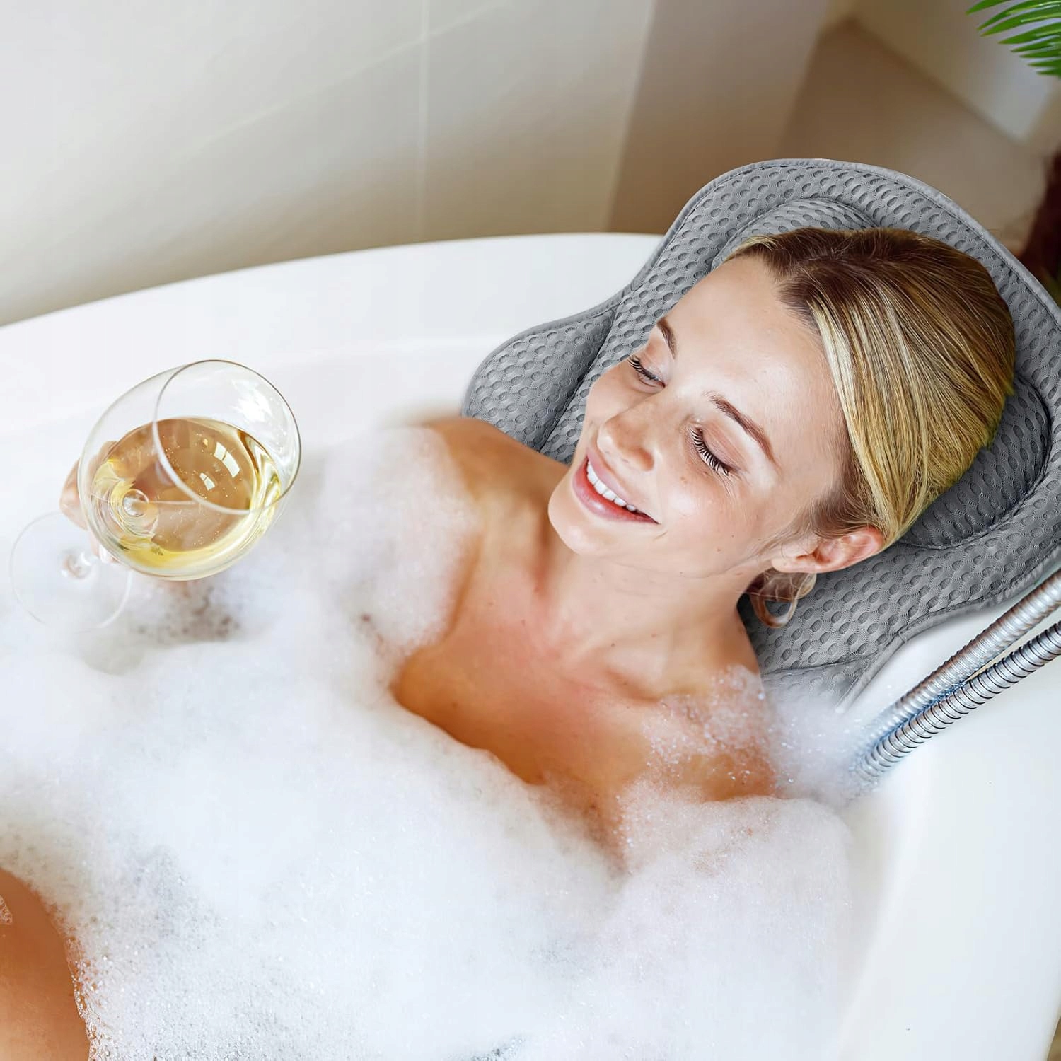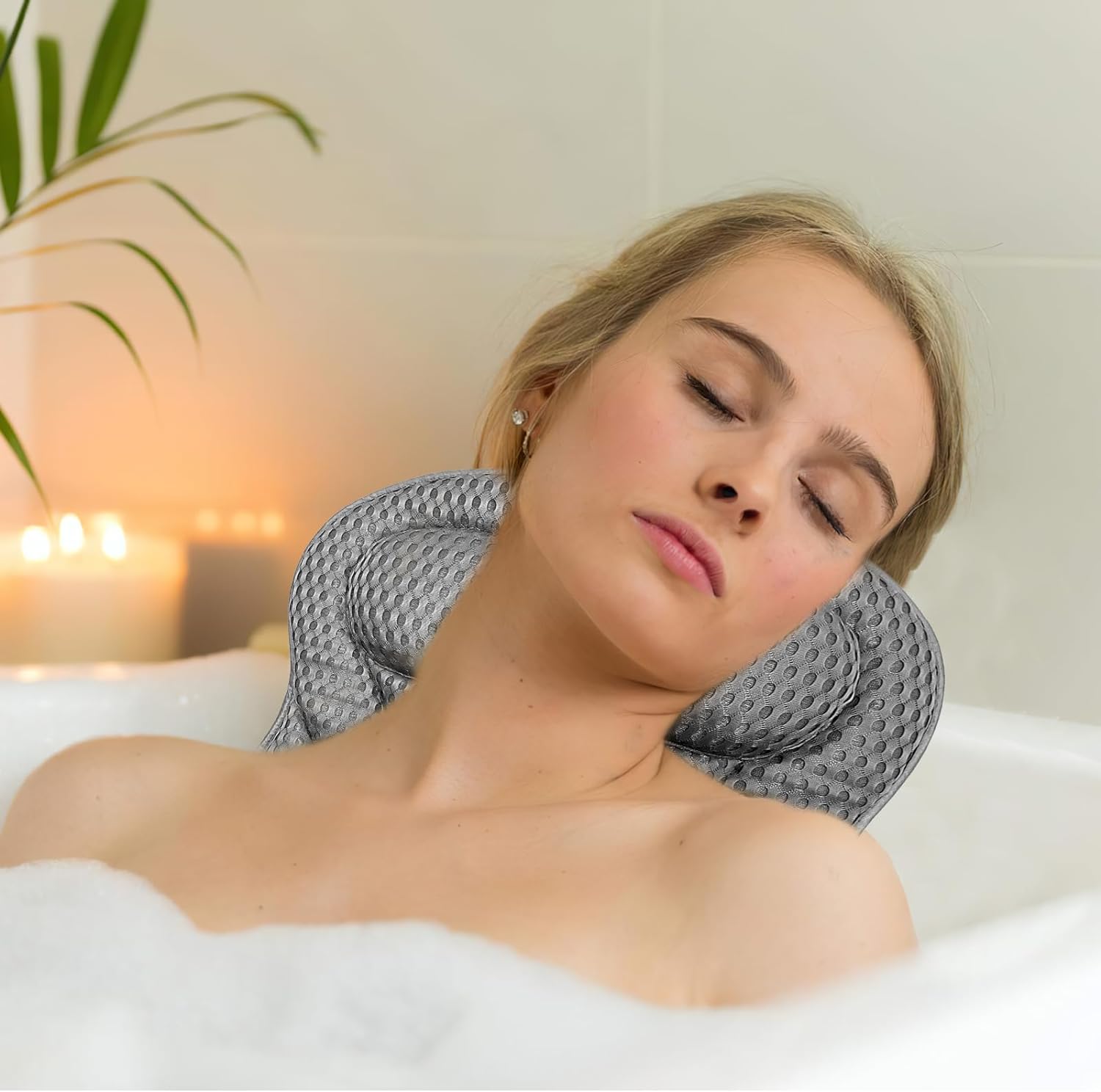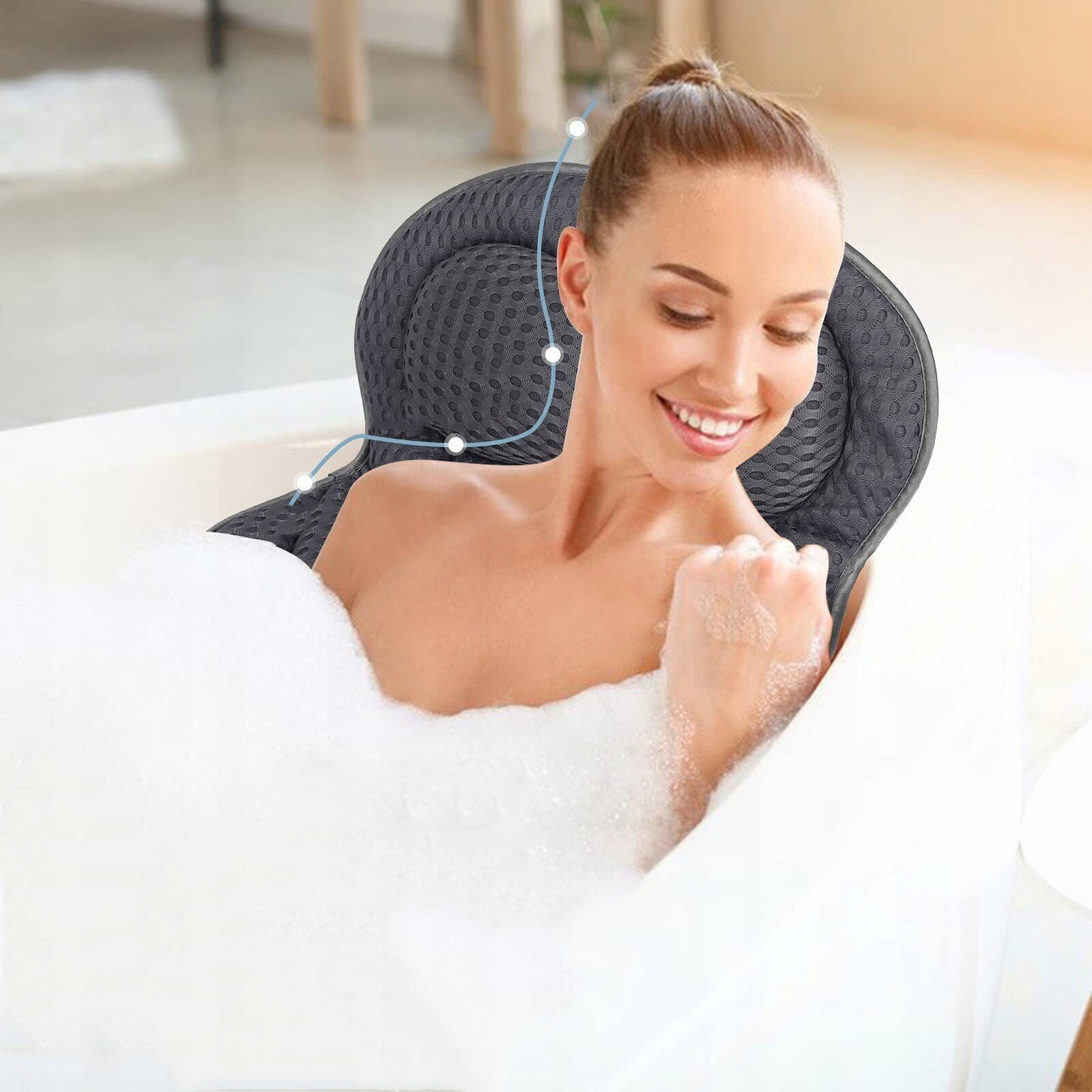 🛁🛁 Технологія 4D Air-Mesh - Подушка для ванни має ергономічний дизайн, технологія 4D Air-Mesh забезпечує легке проникнення води та повітря та швидке висихання, що запобігає проникненню подушки зсередини та навколишнього середовища, що може спричинити неприємні запахи, цвіль або ріст бактерій. Внутрішня частина також потовщена та дихаюча, щоб зменшити фізичну втому та зменшити біль у спині та шиї.