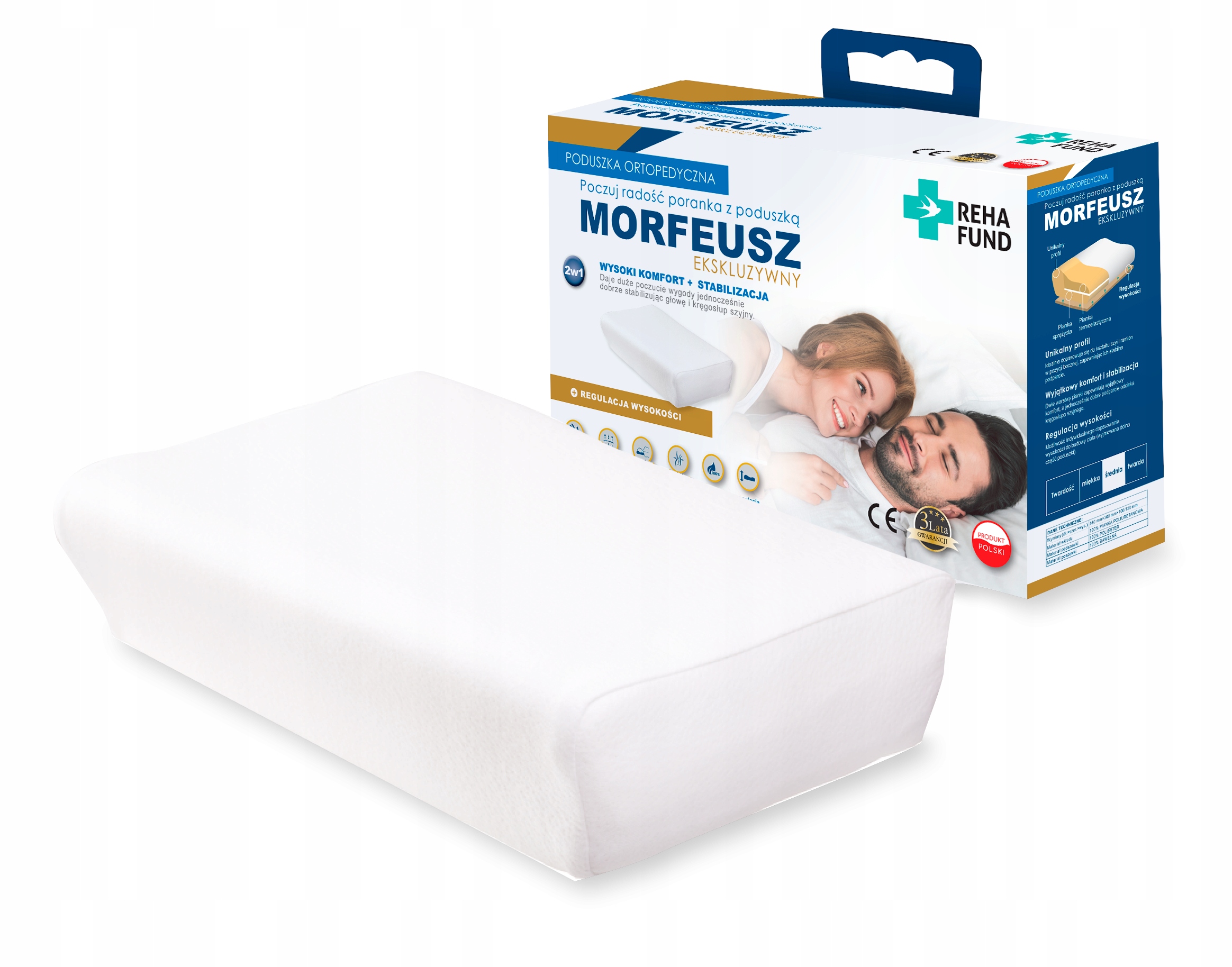Ортопедична подушка Morfeusz розміром 46 х 30 см від бренду Reha Fund забезпечує дуже хорошу підтримку і правильне положення шийного відділу хребта і голови під час сну. Виготовлений з комбінації еластичної та термопластичної піни (з пам'яттю форми). Еластична піна забезпечує дуже хорошу підтримку для хребта, а термопластична піна з пам'яттю зменшує тиск на тіло. Подушка особливо рекомендована лікарями при болях, спричинених неправильним положенням під час сну, і при дегенерації шийних хребців.
