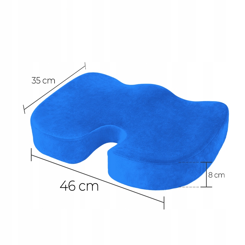 Подушка має термопіну з пам'яттю. Ідеально адаптується до форм вашого тіла. Він підтримує правильне вирівнювання хребта, коли ви проводите багато часу в положенні сидячи. Призначений для людей, чутливих до тиску, для людей після травм, напр. кульшового суглоба. Це розвантажить куприк і хребет, і кров почне швидше текти в нижніх кінцівках.