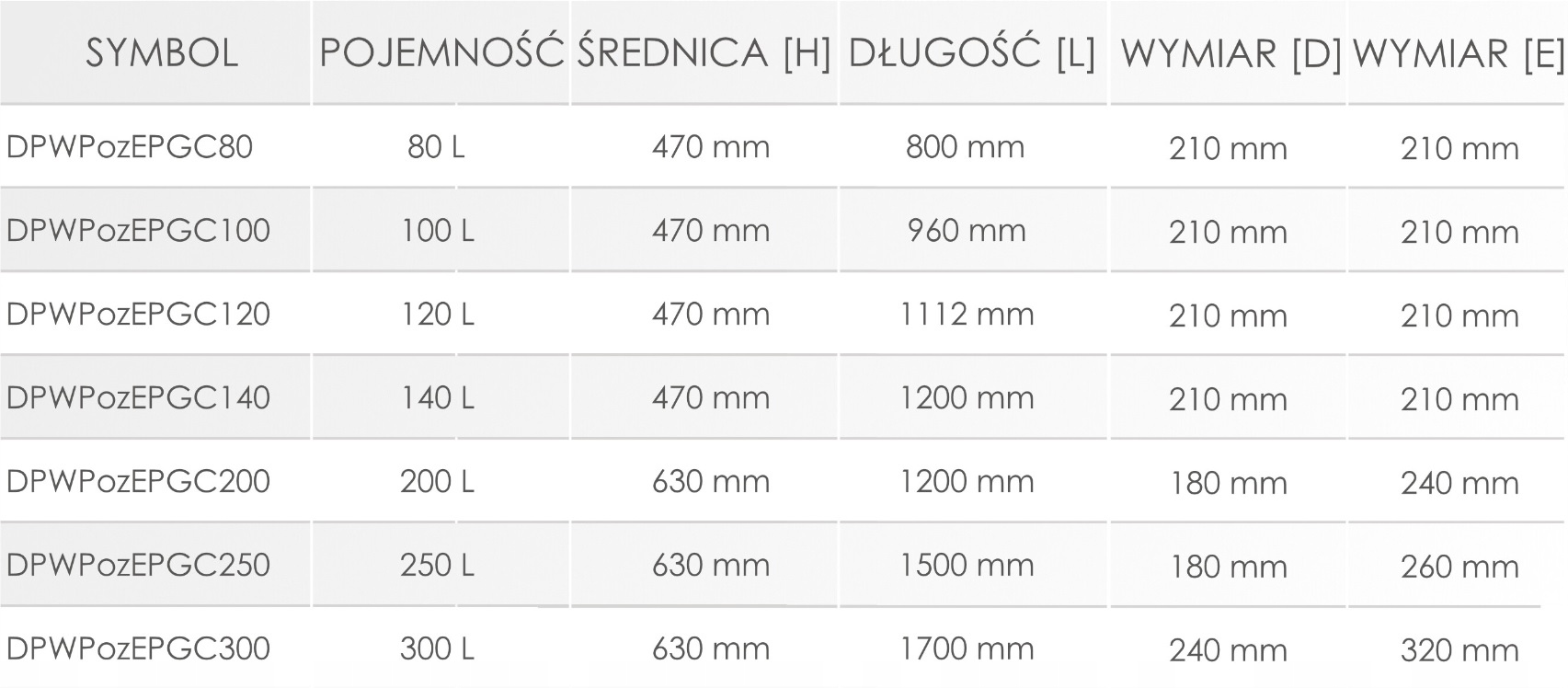 У нижній частині горизонтального резервуару є з'єднання з електричним нагрівачем 5/4 ', ½' і *входом до датчика температури ( *застосовується лише до танків у 200 л, 250 л, 300 л). Живлення та повернення в систему, яка становить 1 ', тоді як джерело живлення та повернення до гарячої комунальної води - ¾' '. Танк може бути встановлений де завгодно через конструкції та систему муфів. Блок живлення може бути поверненням, а спина живлення - живлення. Це стосується як з'єднання з водним котлом Co, так і для з'єднання з гарячою водою. Перевага кожного резервуара - отвір для електричного нагрівача, розташованого посередині дна. Цей тип рішення дає комфорт у ситуації, коли джерело тепла, наприклад Котел гасне - дозволяє отримувати гарячу воду за короткий проміжок часу. Двохросовий обмінник може бути встановлений де завгодно через конструкції та систему муфів. Блок живлення може бути поверненням, а спина живлення - живлення. Це стосується як з'єднання з водним котлом Co, так і до гарячої води гарячої води.