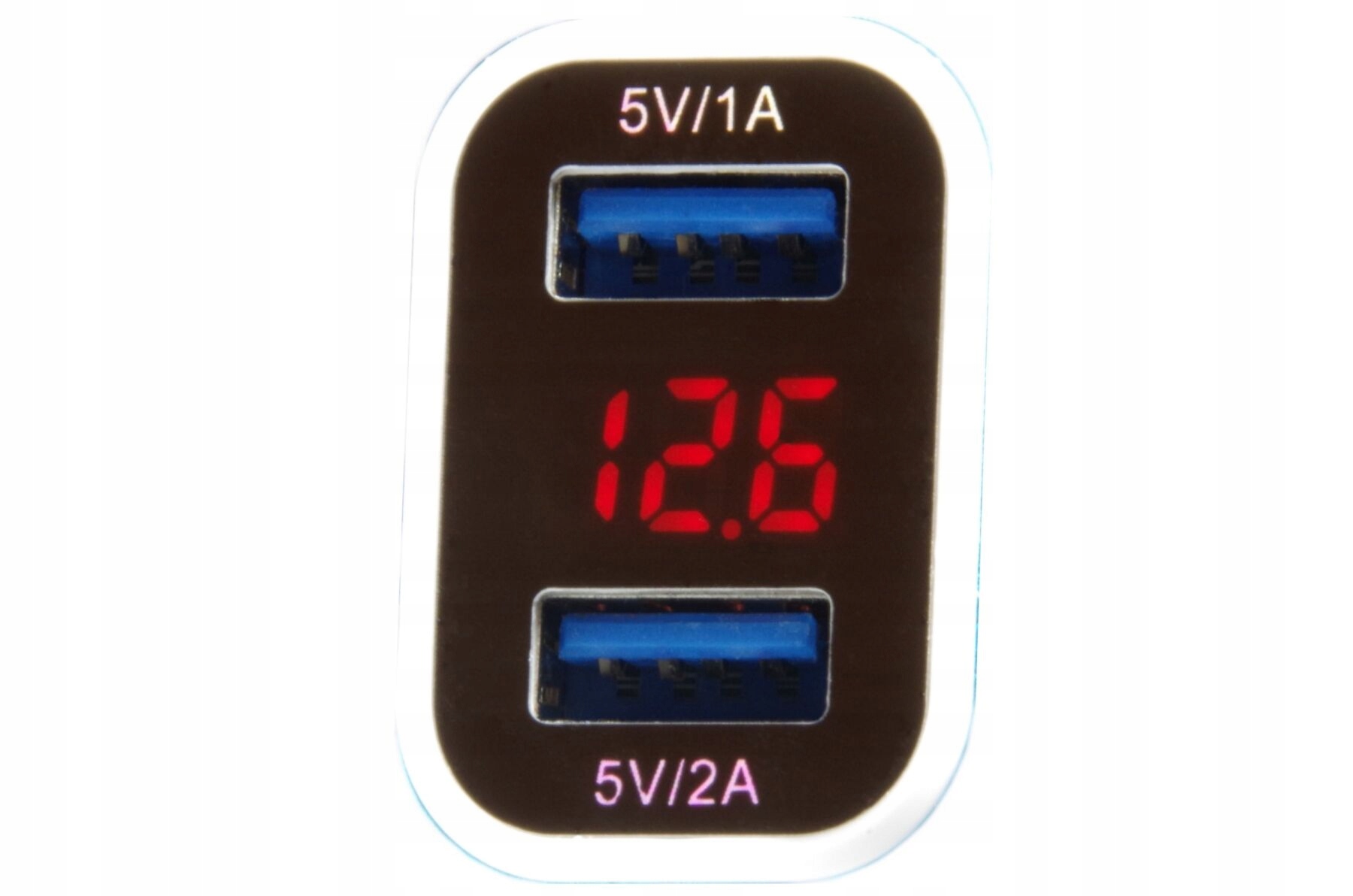 Подвійний USB -зарядний пристрій із світлодіодним дисплеєм LED 2A + 1A