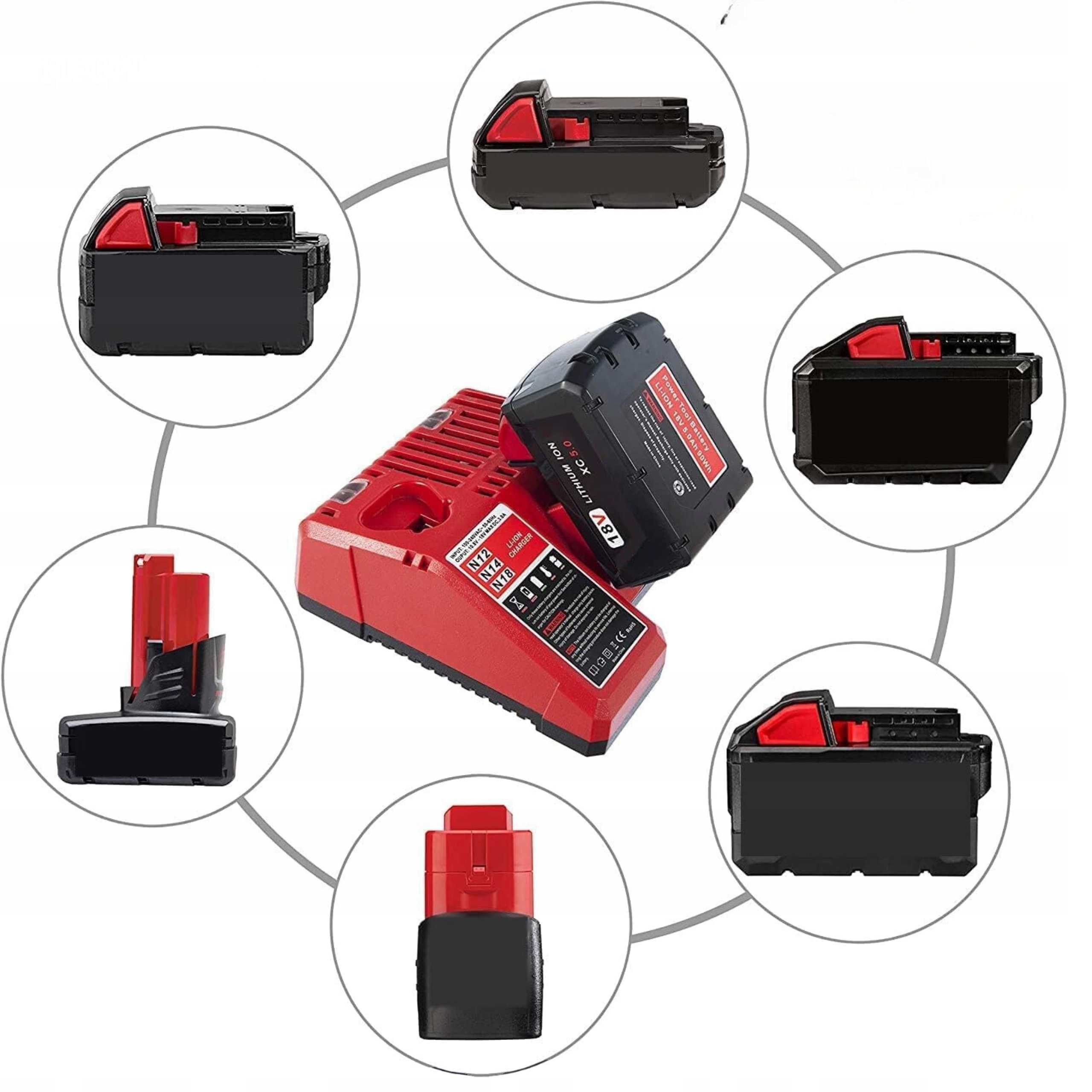 ➯ Зарядний пристрій, сумісний із акумуляторами Milwaukee 12-18 В