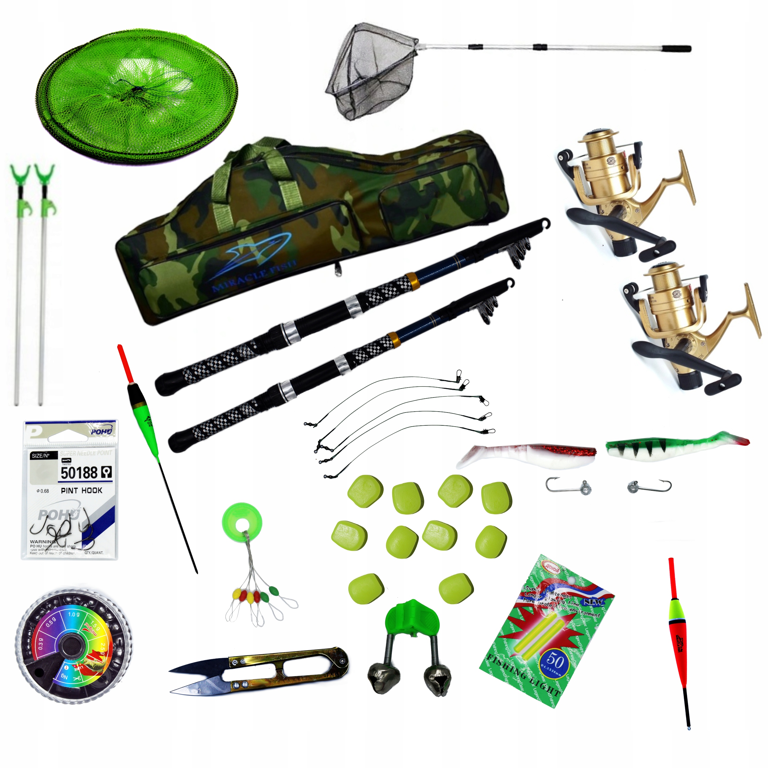 У набір входять безкоштовні аксесуари для оснащення вудки за допомогою поплавця та спінінга.