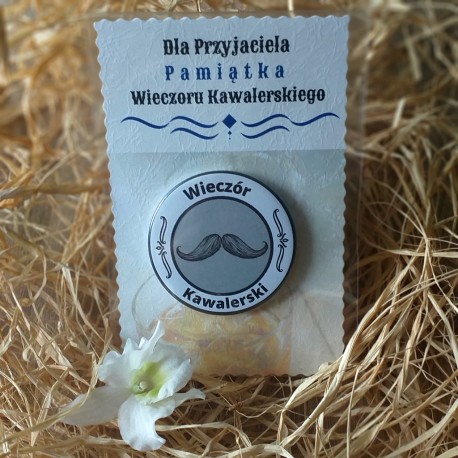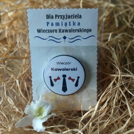 Графіка на лицьовій стороні - шпилька на спині - бейдж учасника парубоцького свята. Лицьова сторона з будь-якою графікою, датою чи іменем майбутнього нареченого.