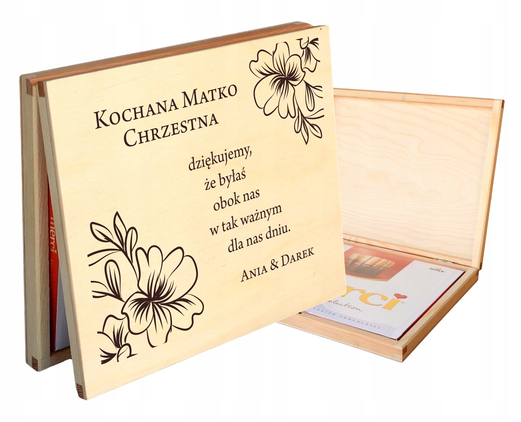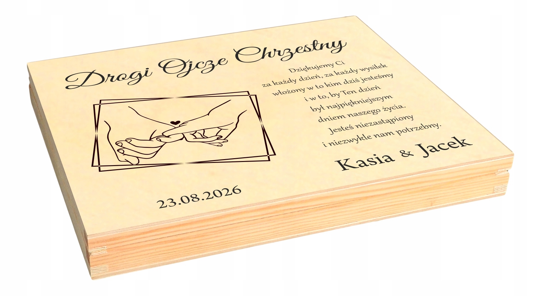 Можна вигравіюйте будь-які ваші побажання зі сторінки всередині коробки, як у прикладі нижче, напишіть свої побажання в повідомленні.
