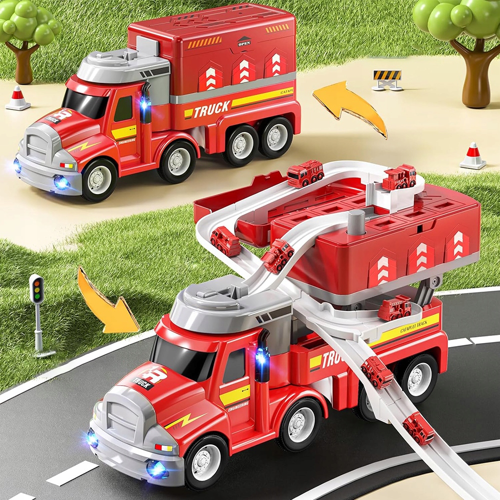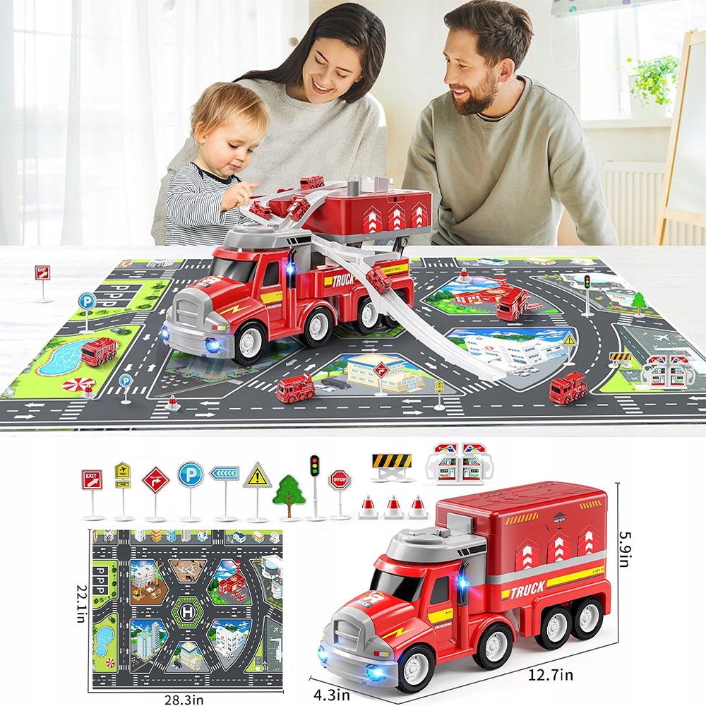 У нас є набори з будівельними, пожежними та міськими транспортними засобами на 3 різні теми. Автомобільні іграшки та килимок можна використовувати для гри з іншими дітьми та батьками, щоб розділити задоволення. Ця іграшка для перегонів стане чудовим подарунком для хлопчиків 3-10 років.