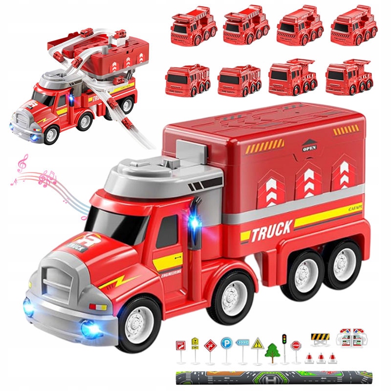 Іграшкові транспортні засоби для дітей мають яскраве світло та звуки, які привертають увагу та інтерес дітей. Діти можуть пограти в маленьких «пожежників» і дізнатися про гасіння пожеж на фоні міського пейзажу! Іграшки для маленьких дівчаток і хлопчиків підходять для гри вдома та на вулиці.
