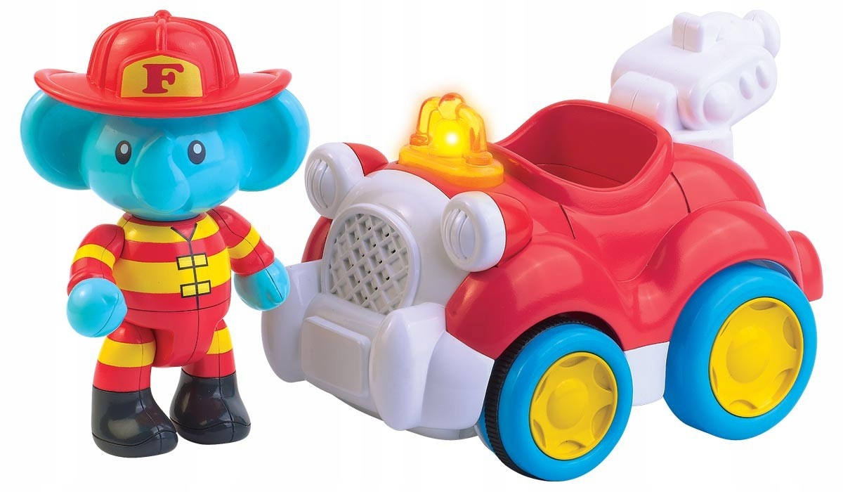слон можна зняти з транспортного засобу і вільно крутити голову, ручки та ноги, які при русі роблять смішний, пекучий звук. Натисніть на білий елемент на задній частині автомобіля, і він піде вперед, роблячи попередження, реалістичні звуки та блимаючи світлом. Коли ви покладете Форка у пожежну машину і натиснете на неї, ви почуєте веселу пісню.