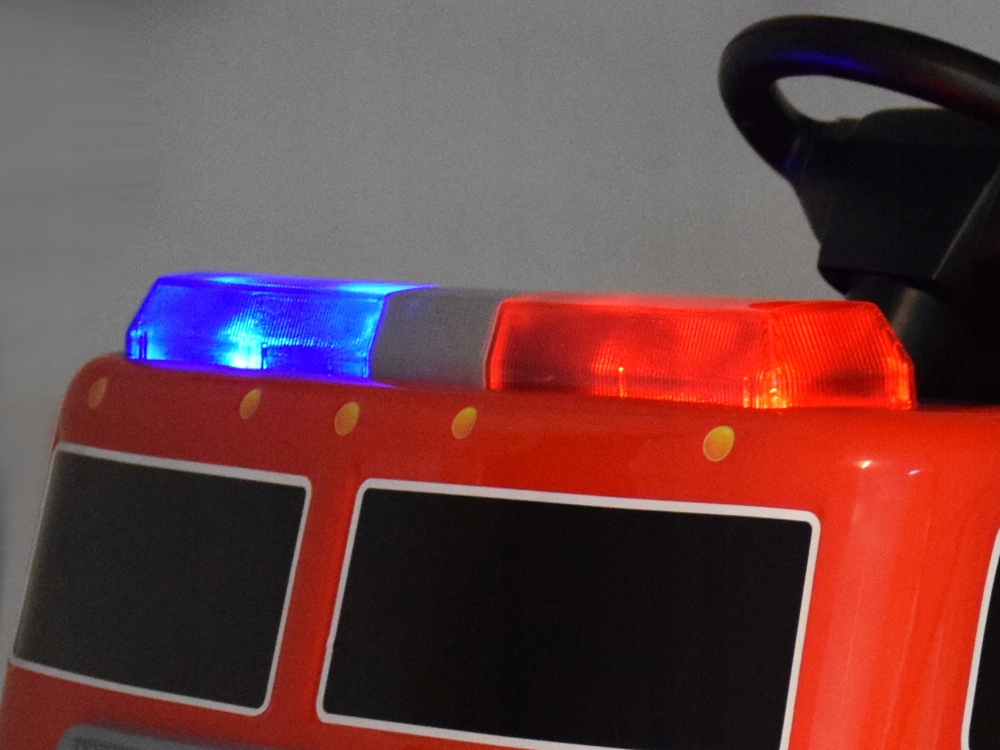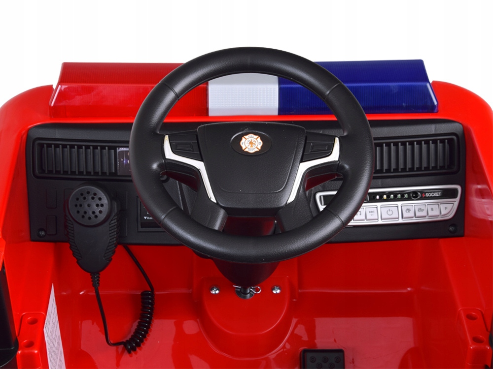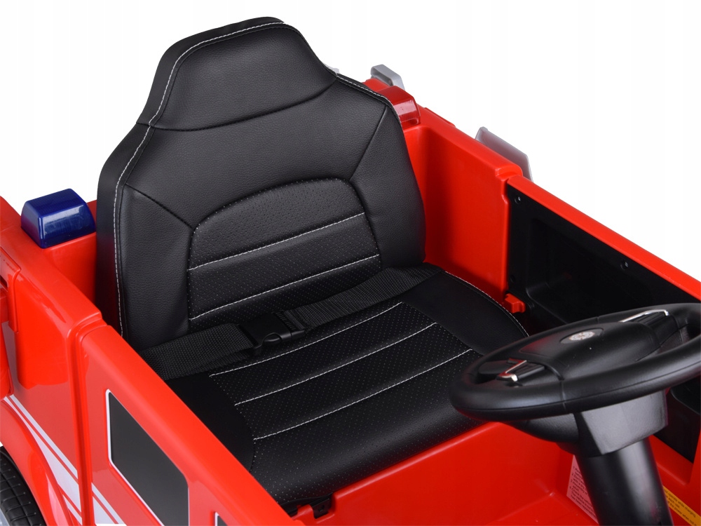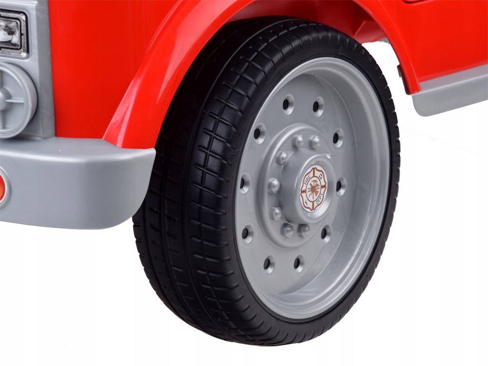 Пожежна машина була розроблена таким чином, щоб задоволення було максимально привабливим. У машині є відкривачі двері, що полегшує дитину сісти і вийти з кабіни. Також відкривається багажник, в якому водій може транспортувати необхідні аксесуари. Всередині є зручне сидіння, покрите еко-шкіркою, а стегна дбає про безпеку під час гри. Комфорт водіння забезпечується колесами, виготовленими з м'якого пластику EVA, який ідеально поглинає нерівність. Транспортний засіб запускається за допомогою кнопки, яка імітує реалістичний звук двигуна. У машині також є миготливі, барвисті вогні на Півнях. Він також оснащений мегафоном, через який дитина може голосно повідомити, щоб пішоходи зійшли з дороги. Безкоштовний старт забезпечує комфортне водіння, а прискорювальна педаль та гальмо в одному автоматично зупиняють транспортний засіб після зняття ноги з педалі, що забезпечує повний контроль над водінням.