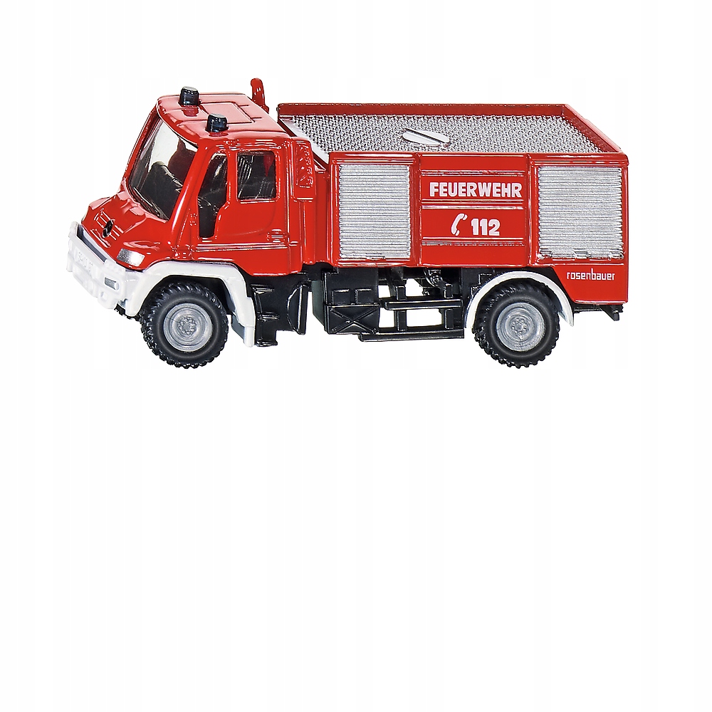 Пожежна машина Unimog, точно виготовлена з металевих і пластикових деталей, відображає зовнішній вигляд справжнього транспортного засобу.