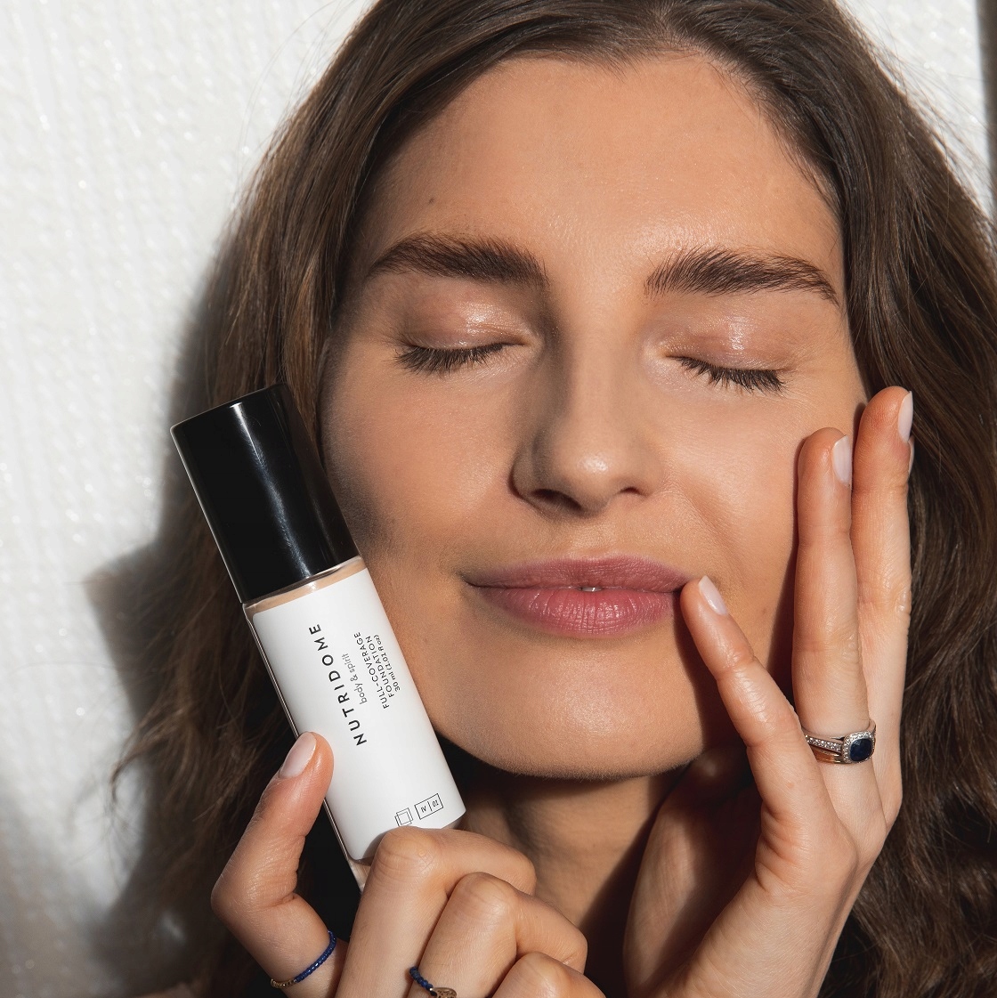 Мені подобається змішувати його 1:1 з освітлюючою основою Nutridome, яка дає ультраприродний ефект рівномірної та ледь помітно освітленої шкіри.