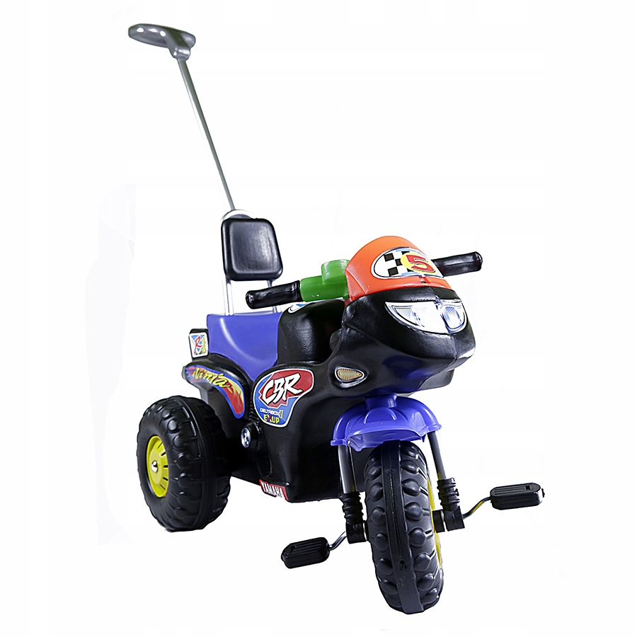 Мотоцикл — ідеальна іграшка для дітей, які ще не можуть самостійно пересуватися на традиційних велосипедах. Триколісна конструкція дозволяє навчитися їзді на цьому типі транспорту.