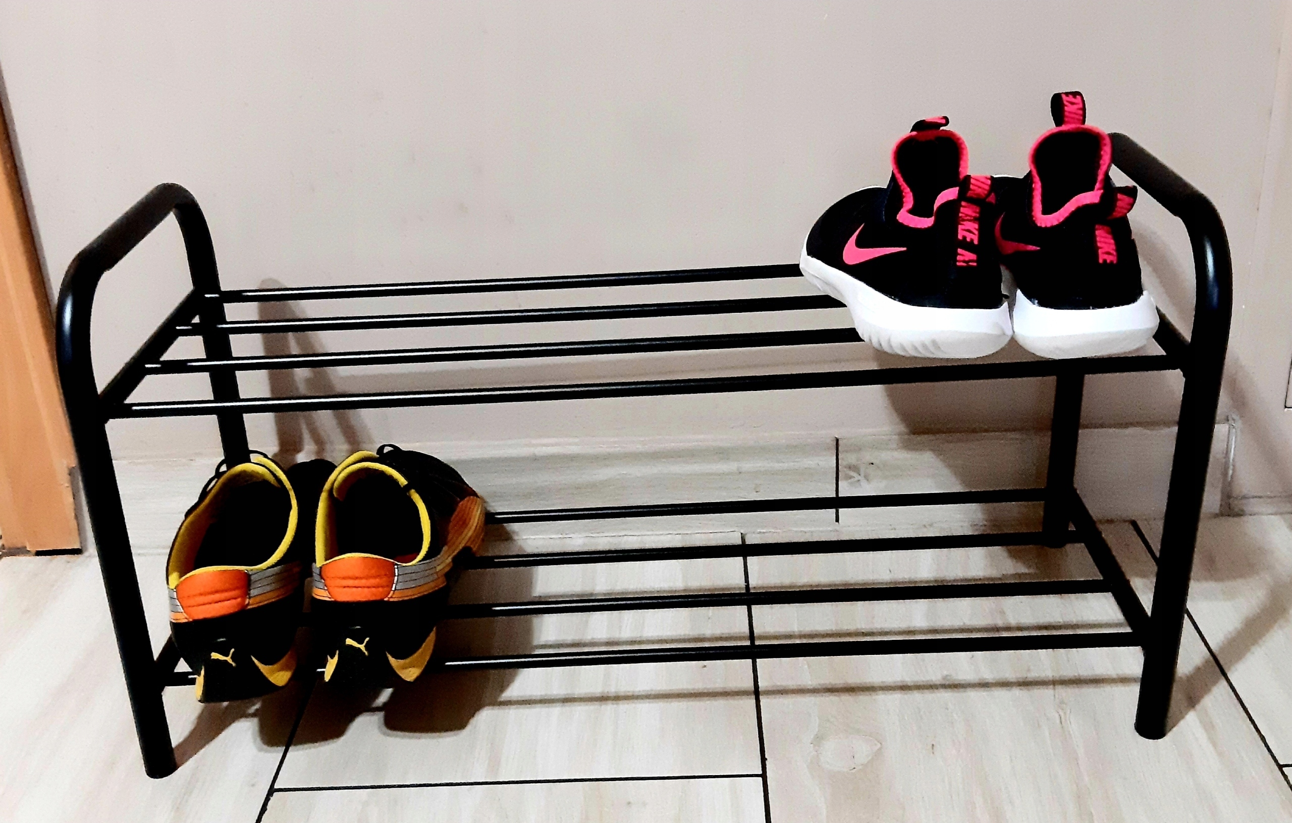 Практична, елегантна 2-ярусна полиця для взуття з металу. Чорне порошкове покриття.