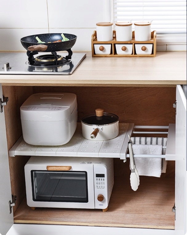 Полицю можна використовувати різними способами. Ви можете поставити взуття на встановлену полицю. Він ідеально впишеться в кухонні шафи і дасть додатковий простір для кухонних гаджетів.