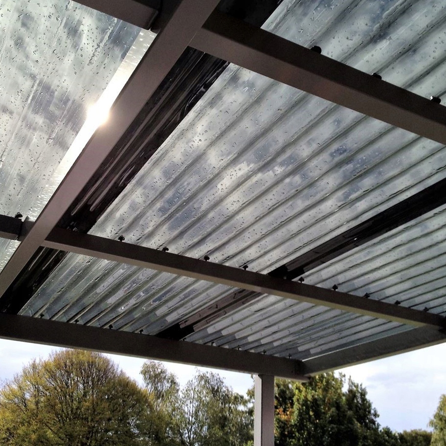 Профільований полікарбонат набагато довговічніший, ніж традиційні профільовані ПВХ плити, його практично неможливо зламати та додатково має УФ-фільтр, який запобігає знебарвленню від сонця. Завдяки тому, що ми надаємо гарантію від граду, зміни кольору сонця та інших механічних пошкоджень протягом 10 років, ви можете бути впевнені, що ваша крита тераса буде довговічною та надійною.
