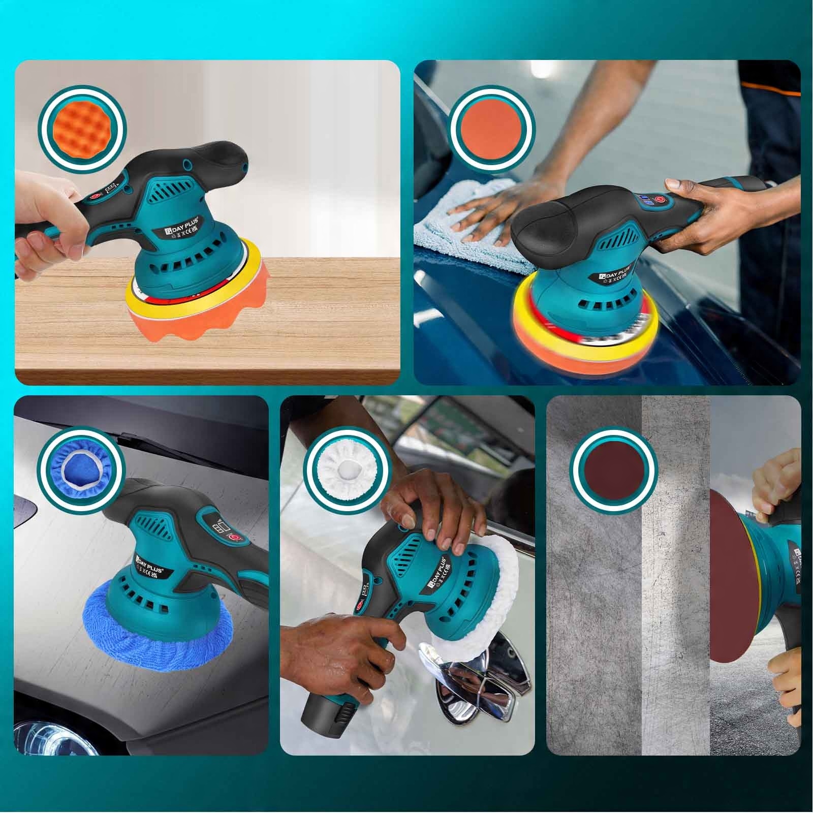 ✅【8 РЕГУЛЬОВАНИХ ШВИДКОСТЕЙ】 - Машина для полірування автомобіля має 8 змінних швидкостей, які можна встановити від 2800 до 5500 об/хв, і швидкість можна регулювати для різні завдання або матеріали. Завдяки рівномірному нанесенню воском автомобільний полірувальник не пошкоджує поверхню автомобіля та виробляє менше шуму.