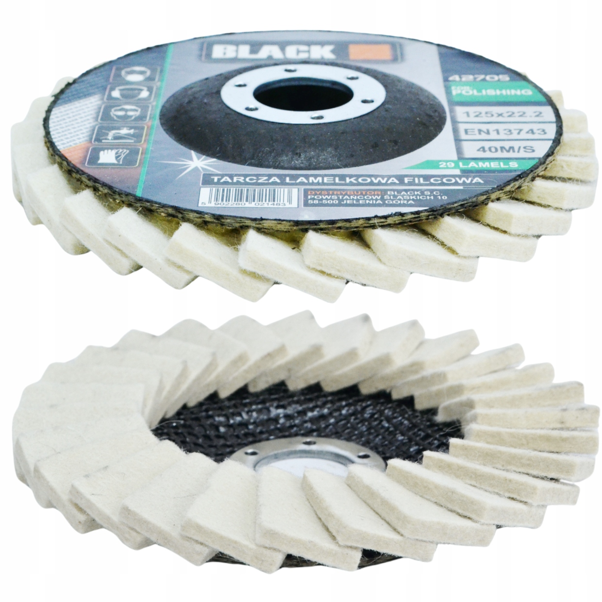 Felt Polishing Lamellar 125M - це унікальний полірувальний диск з високоякісного фетру. Розроблений спеціально для професійного використання, цей ламеляр використовується в різних галузях, де потрібна точна обробка та полірування деталей. Ламель побудована з листів матеріалу, розташованих у вигляді віяла на поверхні диска ламелі, що забезпечує рівномірний знос і максимальну ефективність роботи.